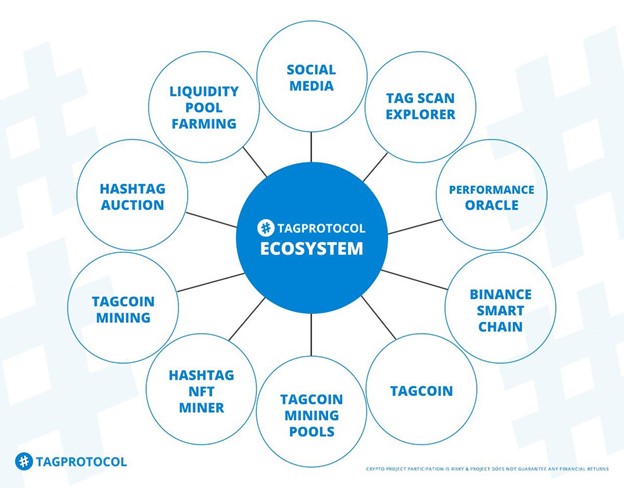 The Tag Protocol project is an attempt to find solutions to and fix some of the difficulties afflicting today's store of value currencies. Our goal is to create a currency ecosystem capable of deploying and migrating smart contract structures to any SmartChain Platform. This guarantees that the community has a stable currency tokenomics upon which to invest their funds, while also being able to adapt or move to the most modern blockchain technology. The Tag Protocol Ecosystem begins by creating a #hashtags registry by implementing a smart contract that allows members to select and register unique #Hashtags. The agreement requires the user an NFT token with the number of their distinctive # hashtags.