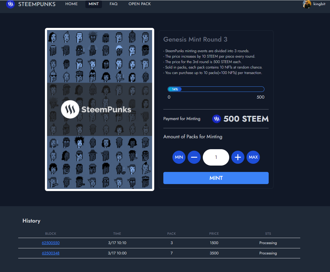 오늘은 스팀체인안에서 NFT를 민팅했습니다. 무려 스팀 펑크 !!