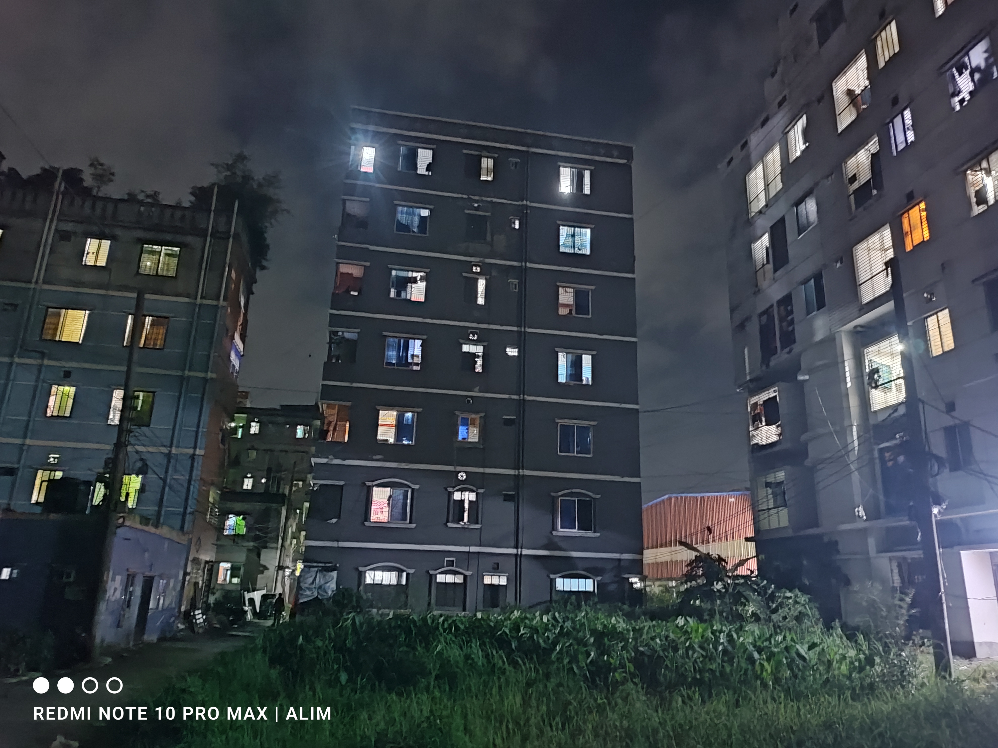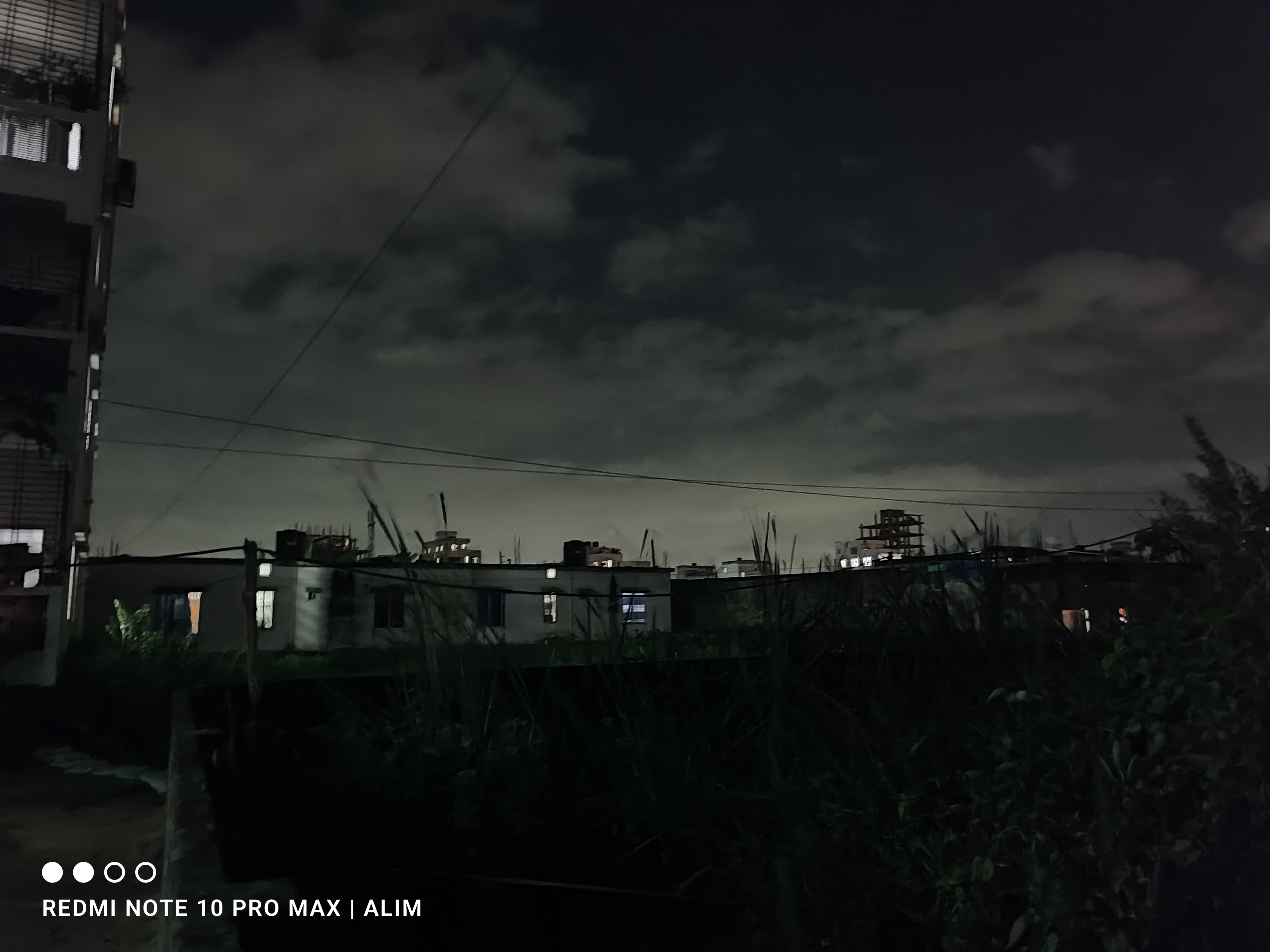 ঠিক পায়ের কাছেই ছিল লম্বা লম্বা আগাছা আর ঝোপজঙ্গল। রাতের অন্ধকারে সেগুলোর রঙ আরও গাঢ় দেখাচ্ছে। এত কংক্রিটের মাঝে এই সামান্য সবুজটুকু থাকাটা ভালো লাগে। এই ঝোপ আর তার ওপর দিয়ে যাওয়া বিদ্যুতের তারগুলো যেন এই শহরতলির রাতের ছবিটাকে আরও বাস্তব করে তুলেছে। নিচু ছাদওয়ালা কয়েকটি বাড়ির আলোও টিমটিম করছে।
