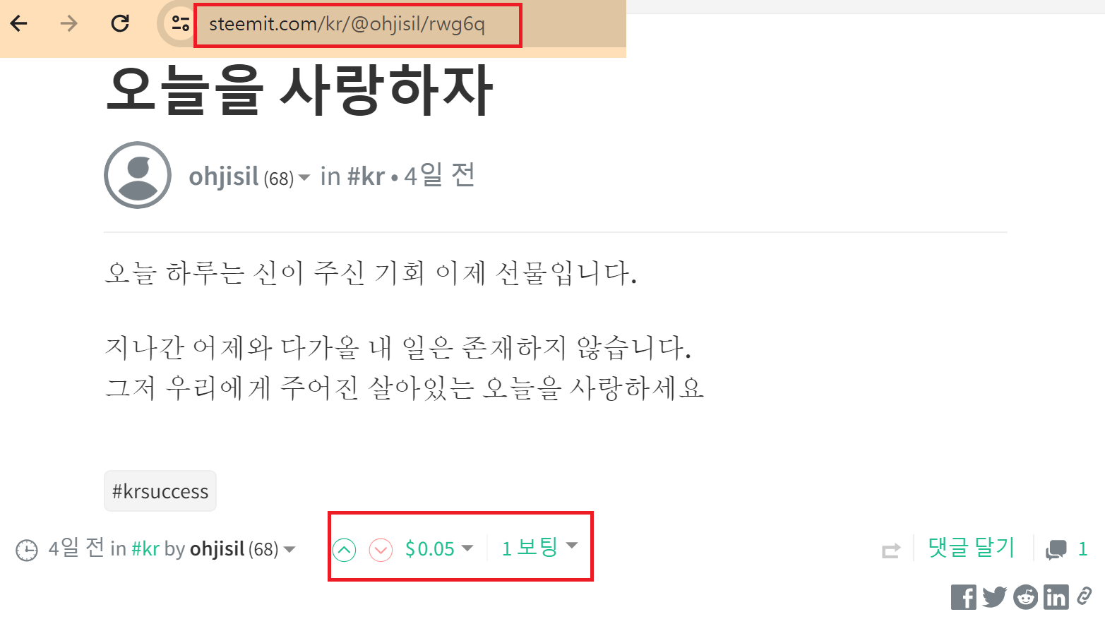 위 사진은 같은 포스팅의 블록체인 기록 그리고 Steemit 화면입니다.