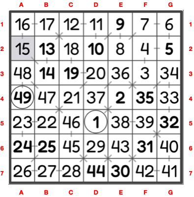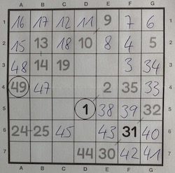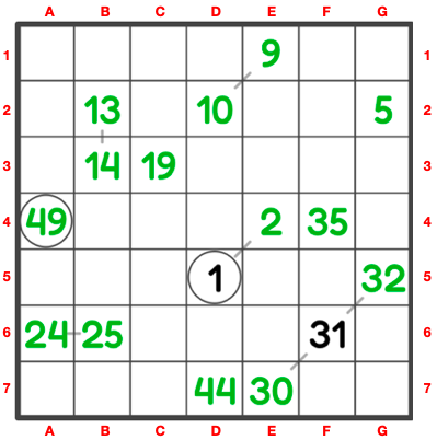 Fill in the empty cells to form a chain of consecutive numbers from 1 to the total number of cells.