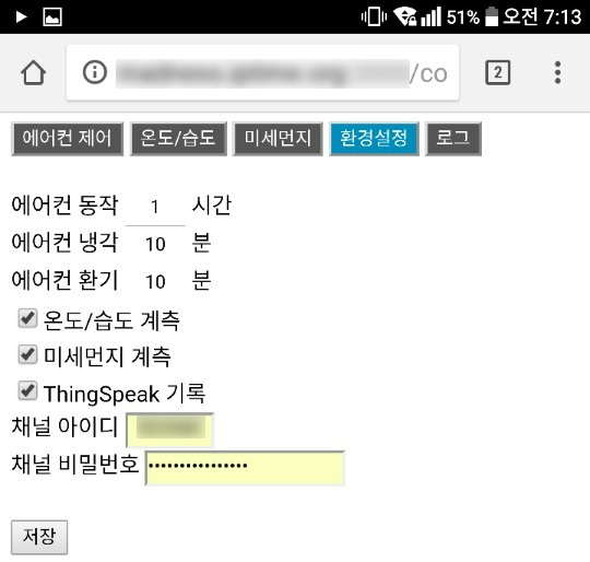 마이컴은 NodeMCU를 사용했고 센서 계측값은 2분 주기로 1일 분량을 RAM에 기록합니다. 계측한 센서 값은 1분 주기로 ThingSpeak Private Channel에 기록하고, 관리 프로그램은 HTML + Javascript로 제작, 차트는 CanvasJS.com을 이용했고, IPTIME에서 제공하는 무료 도메인을 이용하여 외부에서 접속할 수도 있습니다.