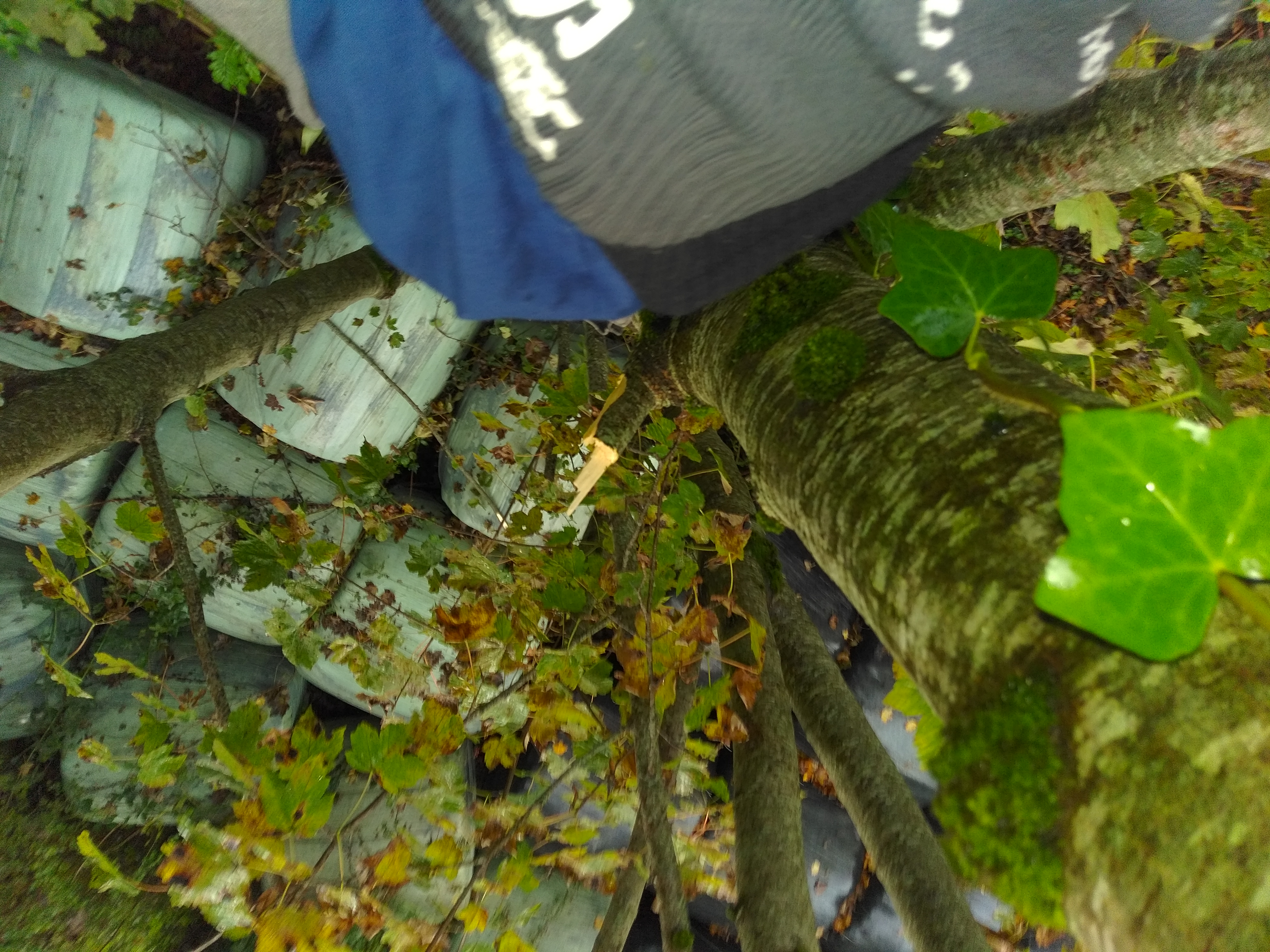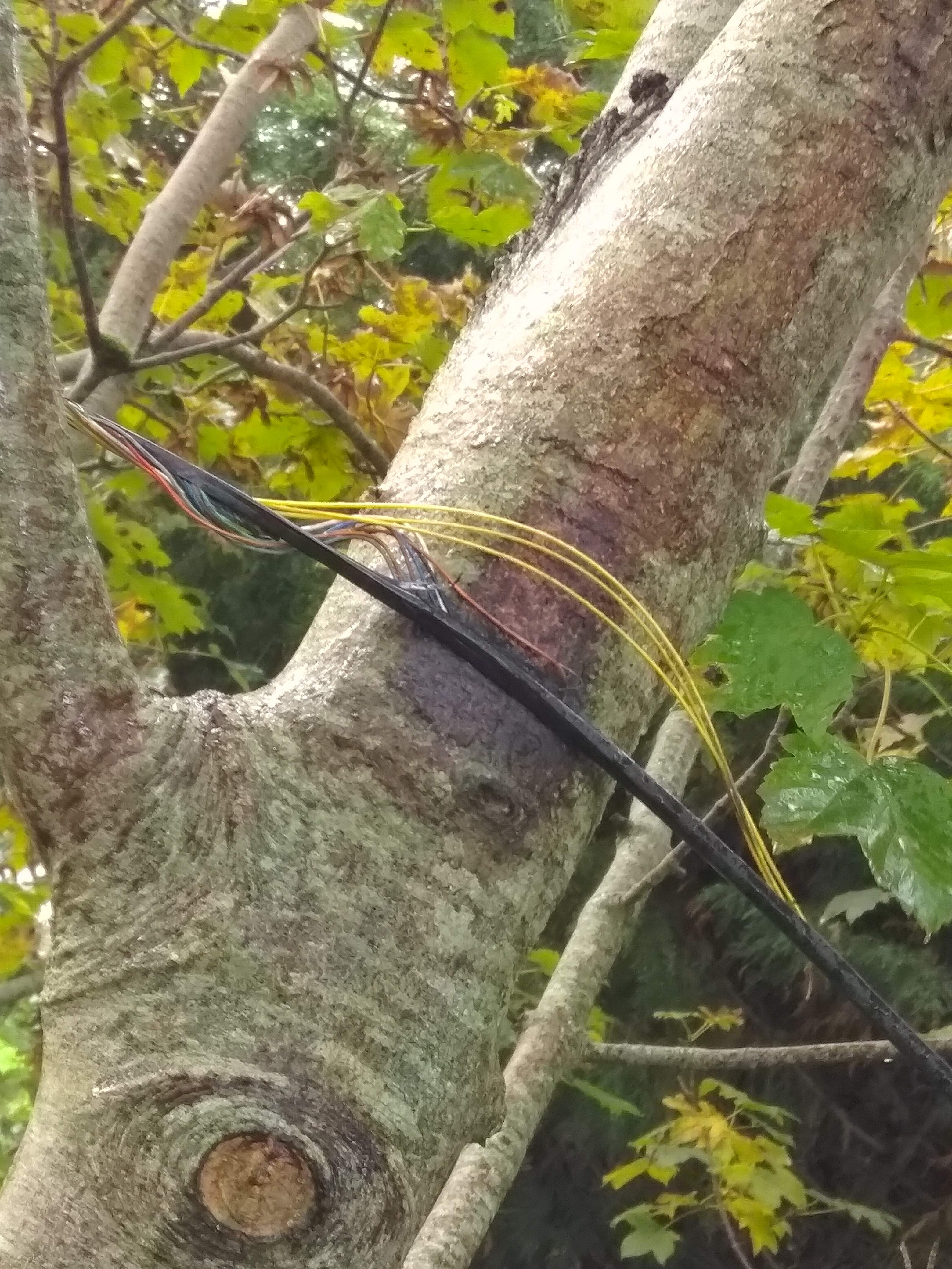 The scene of the crime... bird, lightning, or a slow tear from an angry tree?