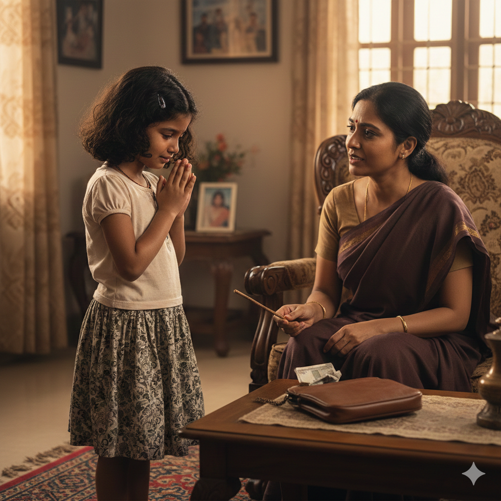 But Dad came home, Dad didn't say anything either..He became silent as if he would get two blows if he opened his mouth….. Even now, when I think about how my mother beat me, I'm afraid to steal. I don't want to do that for anything anymore, even if I wanted to... If I hadn't run away from there, my mother would have kept my hand warm. What I did made her so angry. At the same time, the lesson I learned that day had a huge impact on my life. It made me realize how important discipline is. From that day on, I don't see keep money in a purse at home but kept openly on table or infront of god photo at pooja room . I allow my mind to touch whatever is open on the table or in front of the picture of God. The incident never allowed me to even think about stealing, not only inside the house but anywhere outside.