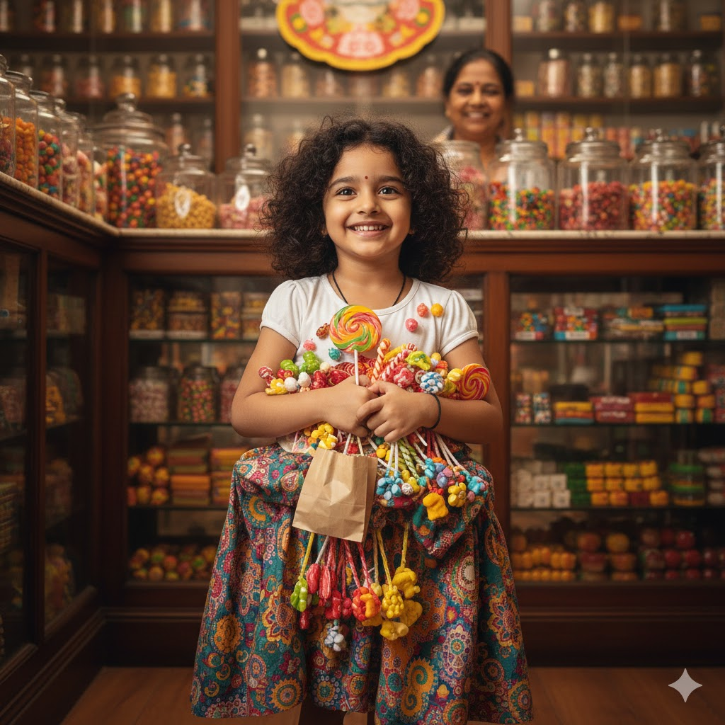 I was 8 years old at the time and was studying in the third grade. I didn't know the value of money, but I knew the value of sweets that came with money because if I asked for sweets, they would buy me a chocolate or a piece of candy called a gummerkat. So, it would be very tempting to look at other candies and try to eat them. I would think that I would have to eat them all in one day. There were two grocery stores near my house. One store was small, with only a lot of meters in it. There were a lot of toys and balloons to attract children. That store was like a magic store for us. One of the items in it really attracted us.