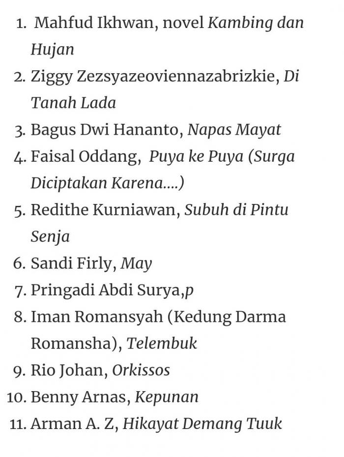 Tak lama kemudian, pengumuman lomba diumumkan. Pi masuk ke dalam long list nominasi pemenang, meski tidak menang. Ada 11 judul. Pi berada di urutan ketujuh.