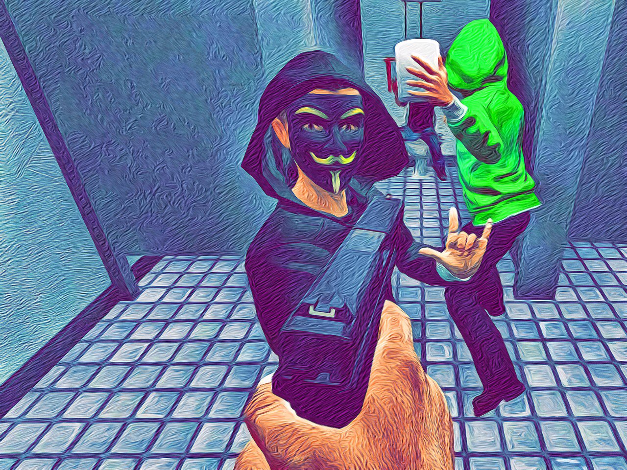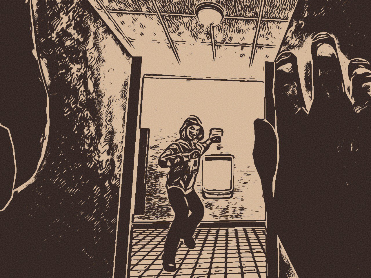 화장실에서 소변을 볼 땐 바지와 팬티를 완전히 내린 후 넘어뜨린 다거나!