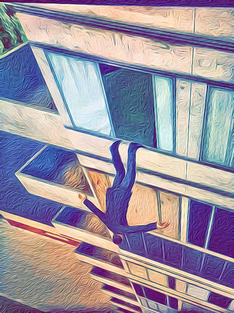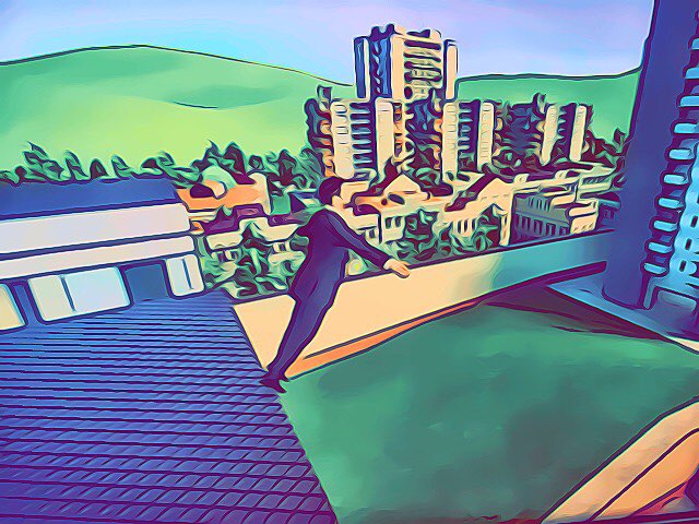 짧은 회계와 함께 옥상 난간에 발하나를 걸치고 바닥을 내려다봤다.
