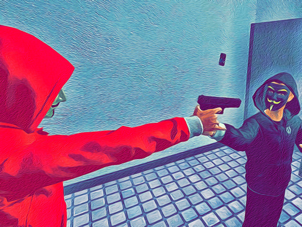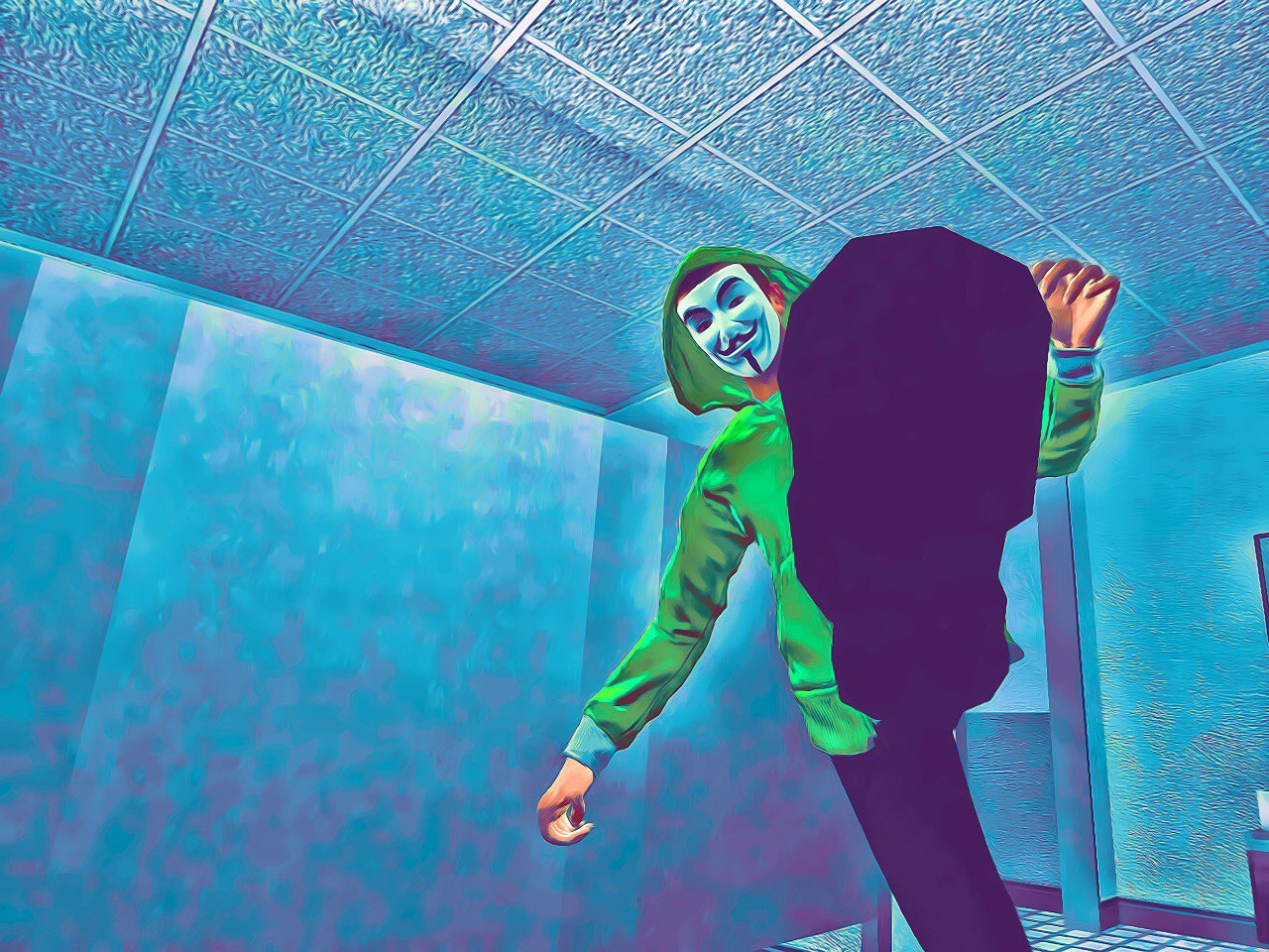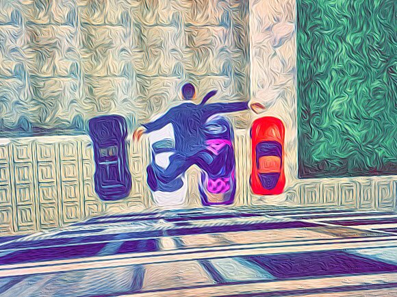 옥상에서 뛰어내린 조엘은 그 작은 몸뚱어리로 자동차를 찌그러뜨렸다.