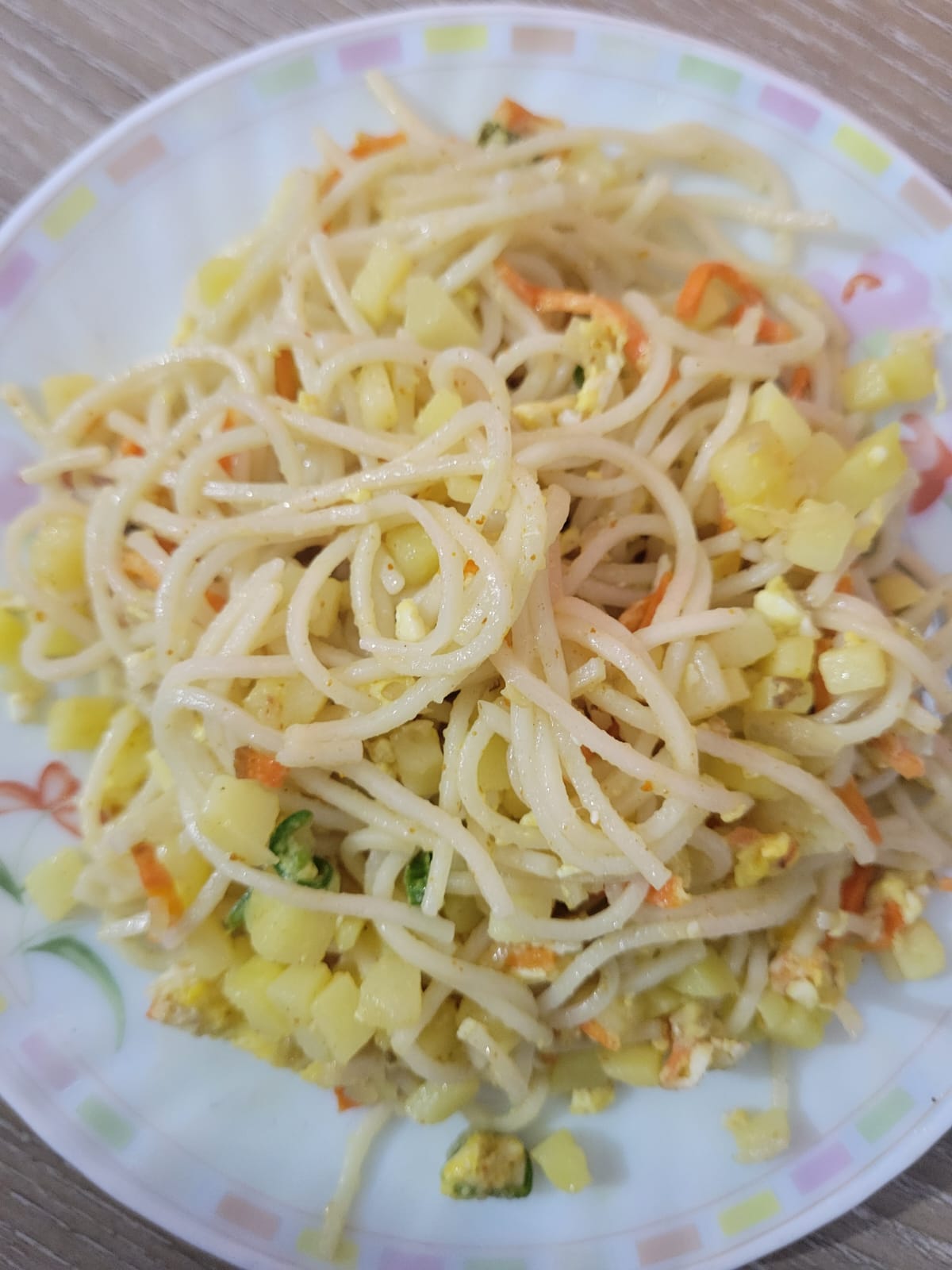 ইন্ডাক্সন টা চালিয়ে গরম পানি চুলায় দিলাম। এদিকে আমি পেঁয়াজ মরিচ টমেটো সবকিছু কেটে নিলাম । গরম পানির মধ্যেও কুচি করে রাখা আলু দিয়ে দিলাম। কারণ আলু ছাড়া আমার চলে না। সবকিছুতে আলু আলুময় জীবন আমার। তার একটু পরে নুডুলস গুলো দিয়ে দিলাম। একটু মোটা সিদ্ধ হতে সময় লাগে। সিদ্ধ হয়ে গেল সেকে নিয়ে। এবার কড়ায় তেল দিয়ে আজ মরিচ ভেজে নিলাম। দুইটা ডিম আরেকটু মুরগির মাংস সাথে ভেজে নিলাম। তারপর মুরগির মাংসটা কুক হয়ে যাওয়ার পর। নুডুলস টা দিয়ে দিলাম সাথে মসলা মিক্সটাও দিলাম। উপরে একটু সস আর লবণ দিয়ে ভালো করে ভেজে নিলাম। শেষ আমার রান্না।একটা প্লেটে নুডুলস গুলো ঢেলে বউয়ের কাছে নিয়ে গেলাম।