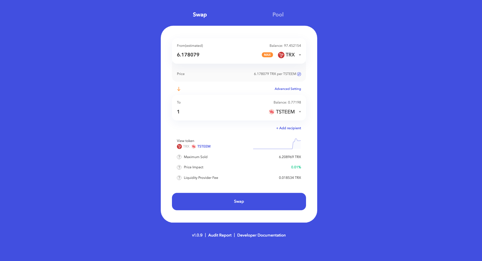 这样,你就可以在JustSwap上,将TSTEEM与TRX、USDT等资产直接交易。通过nutbox Gateway和JustSwap实现STEEM-TRX的交易。Steem与Tron的世界从来没有这么近过,如今在Nutbox的努力下,它们之间竟然如此顺滑。链接:《A new era of Steem DeFi: Nutbox is supporting STEEM-TRX, STEEM-PNUT, STEEM-USDT exchanges》《Trade STEEM to TRX/USDT on nutbox.io and JustSwap》