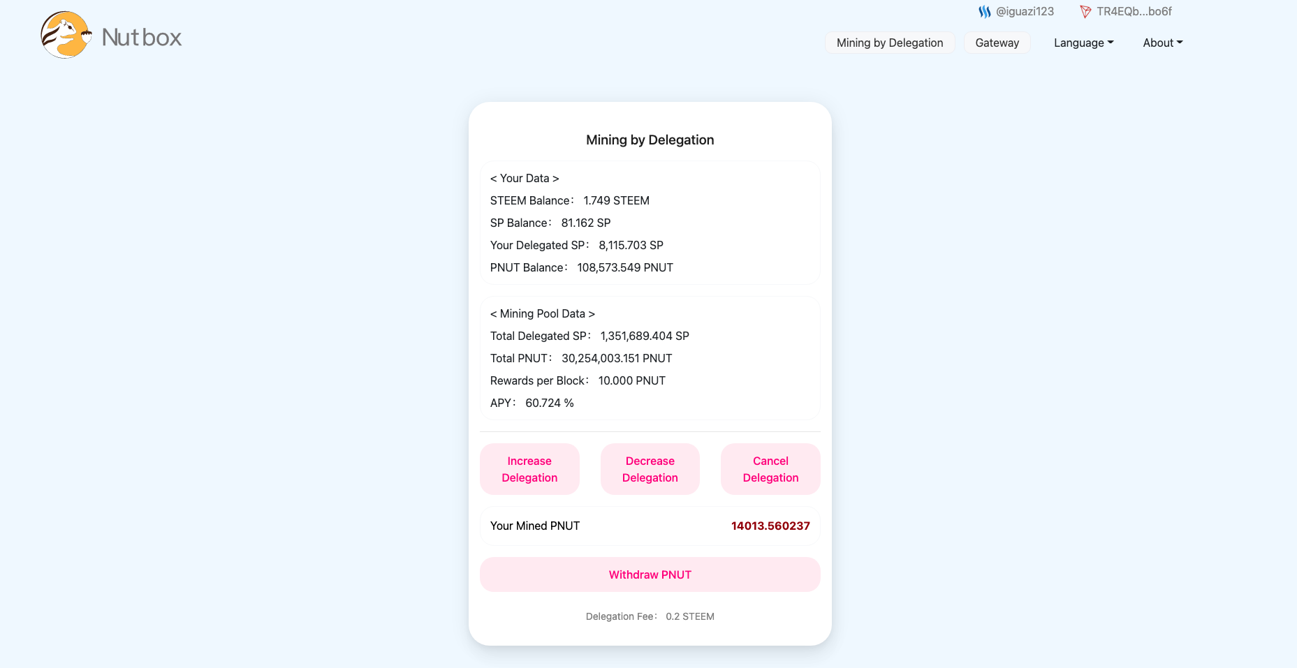 Frankly speaking, Nutbox, a project bridging the Steem and Tron, is a pioneer of TRC-20 token (PNUT) mining based on Steem token (SP). For nearly one and half month after it launched, Nutbox.io got 1.36M SP delegation, annual percentage yield reaches 60% now.