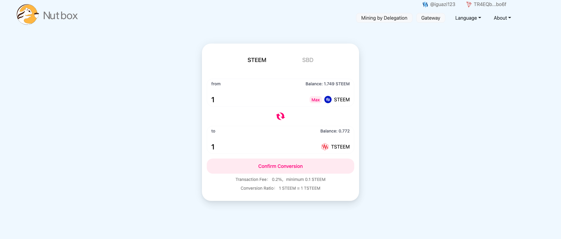 我们很早就在为Steem与Tron的融合做准备,nutbox.io上线了 STEEM-TSTEEM 以及 SBD-TSBD兑换网关,你可以1:1兑换STEEM与TSTEEM(TRC20)。