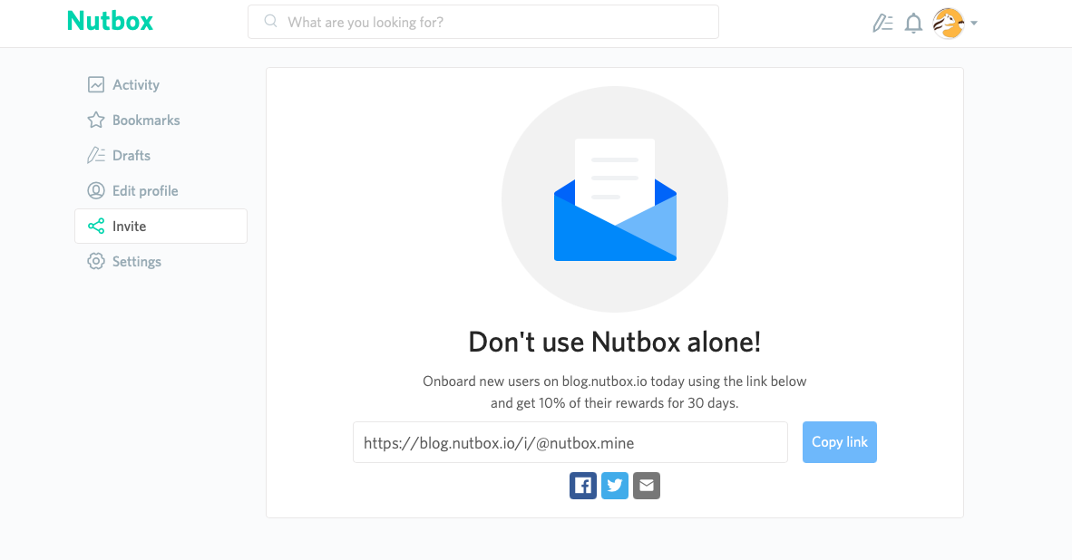 Of course, Nutbox has its own blog: blog.nutbox.io. You can invite your friends to join us, and you will get a 10% reward. Furthermore, Nutbox is running a Steem witness node also, supporting the Steem community growing better. Link: 《Nutbox Blog is online , APY of SP delegation mining reaches 118%》《Nutbox launches its witness node , Please vote for us!》