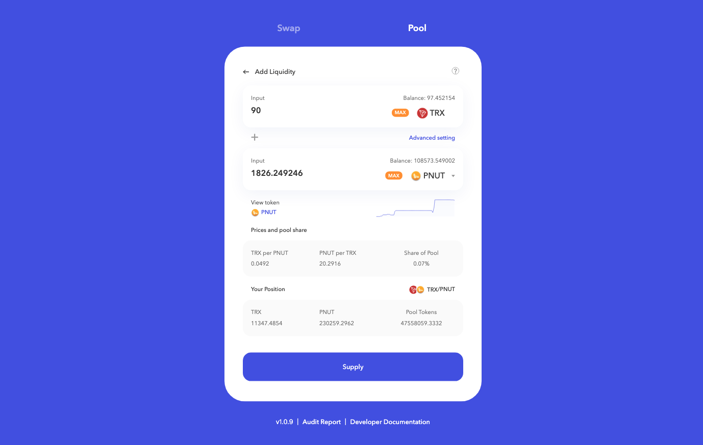 After the PNUT is listed by JustSwap, any PNUT-TRX liquidity provider can get a portion of transaction fees as a payback.