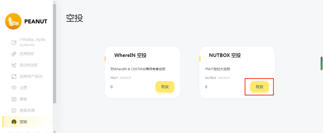 - Click the link 【https://peanut.nutbox.io/#/airdrop】to enter the airdrop query interface, as shown in the figure