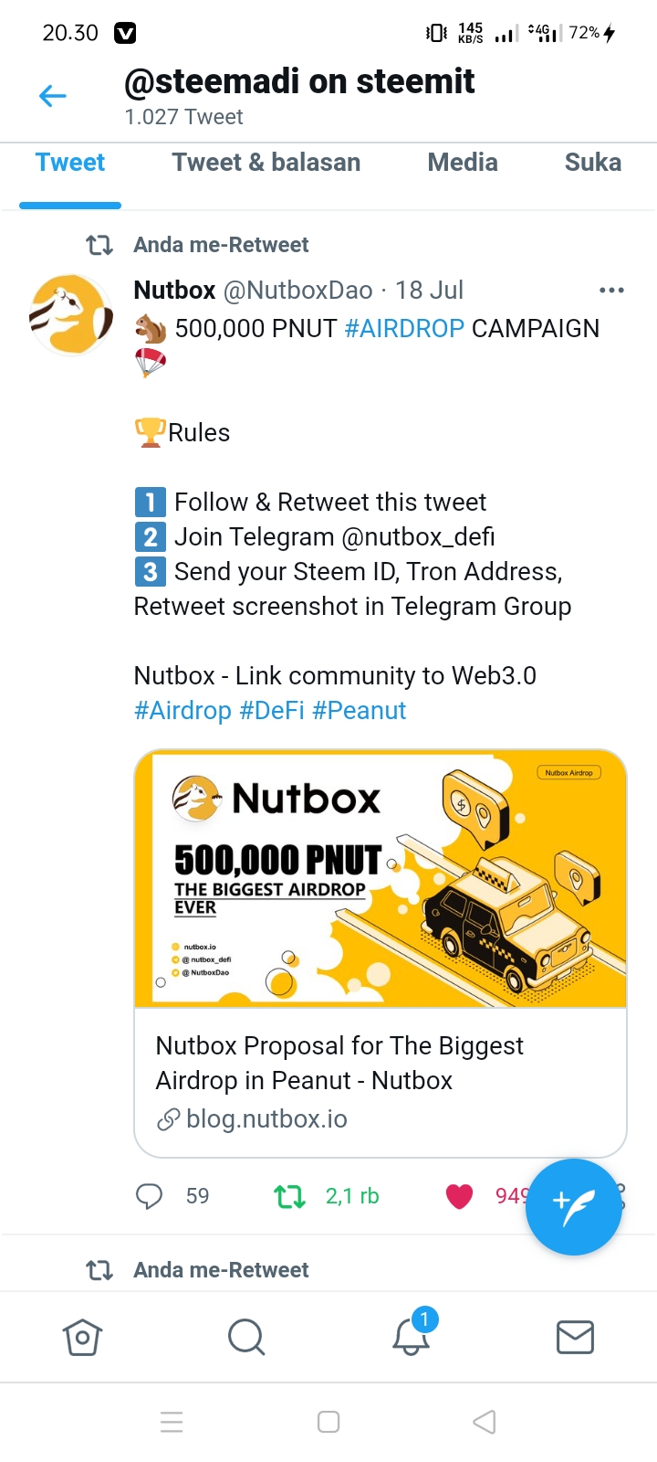 Retweet Screenshoot PNUT Airdrop