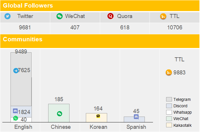 - Members support on Twitter, Telegram, Whatsapp, and Facebook.