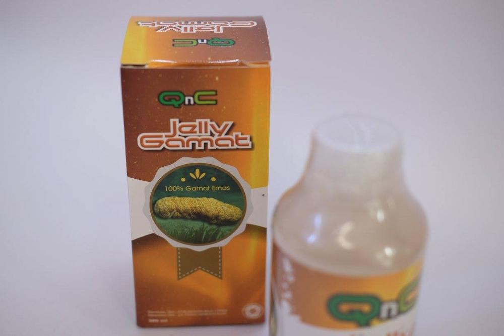 Jelly Gamat QnC merupakan salah satu produk herbal yang diproduksi dengan memanfaatkan kandungan Nutrisi dari Teripang Emas. Bahan dasar Jelly Gamat QnC ini adalah teripang emas ASLI dari perairan Indonesia yang termasuk kedalam laut terbaik di seluruh dunia. Teripang ini kemudian di budidayakan untuk kepentingan kesehatan, karena berdasarkan penelitian teripang memiliki manfaat yang luar biasa dalam dunia pengobatan.
