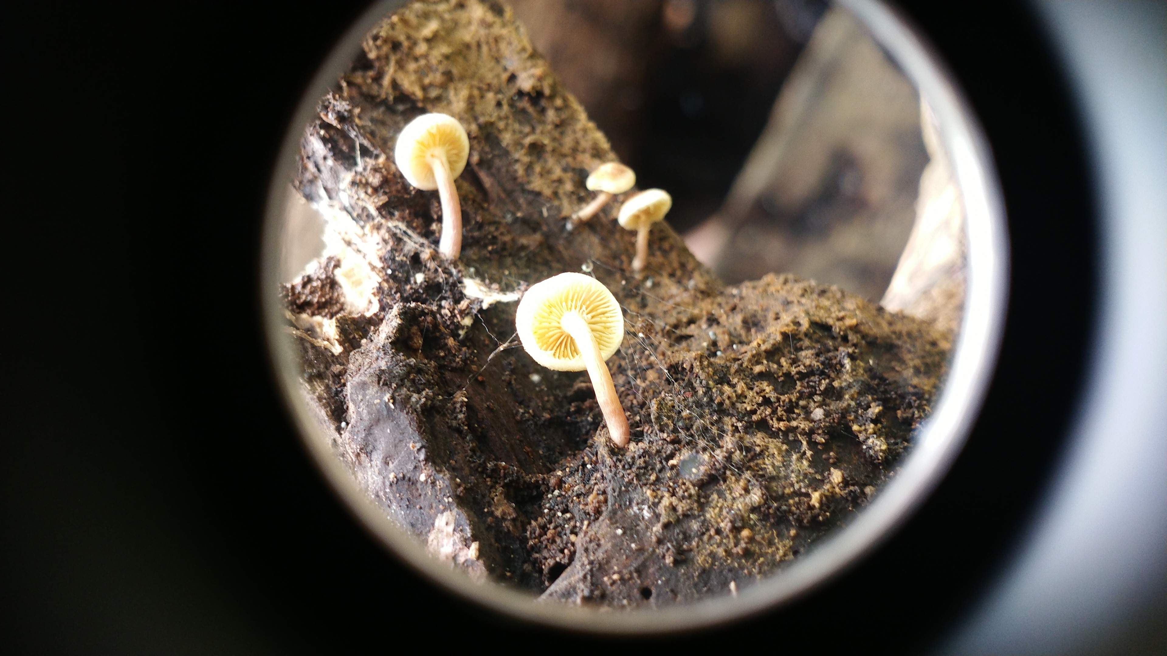 Fokus lensa ketika memotret jamur atau benda kecil.