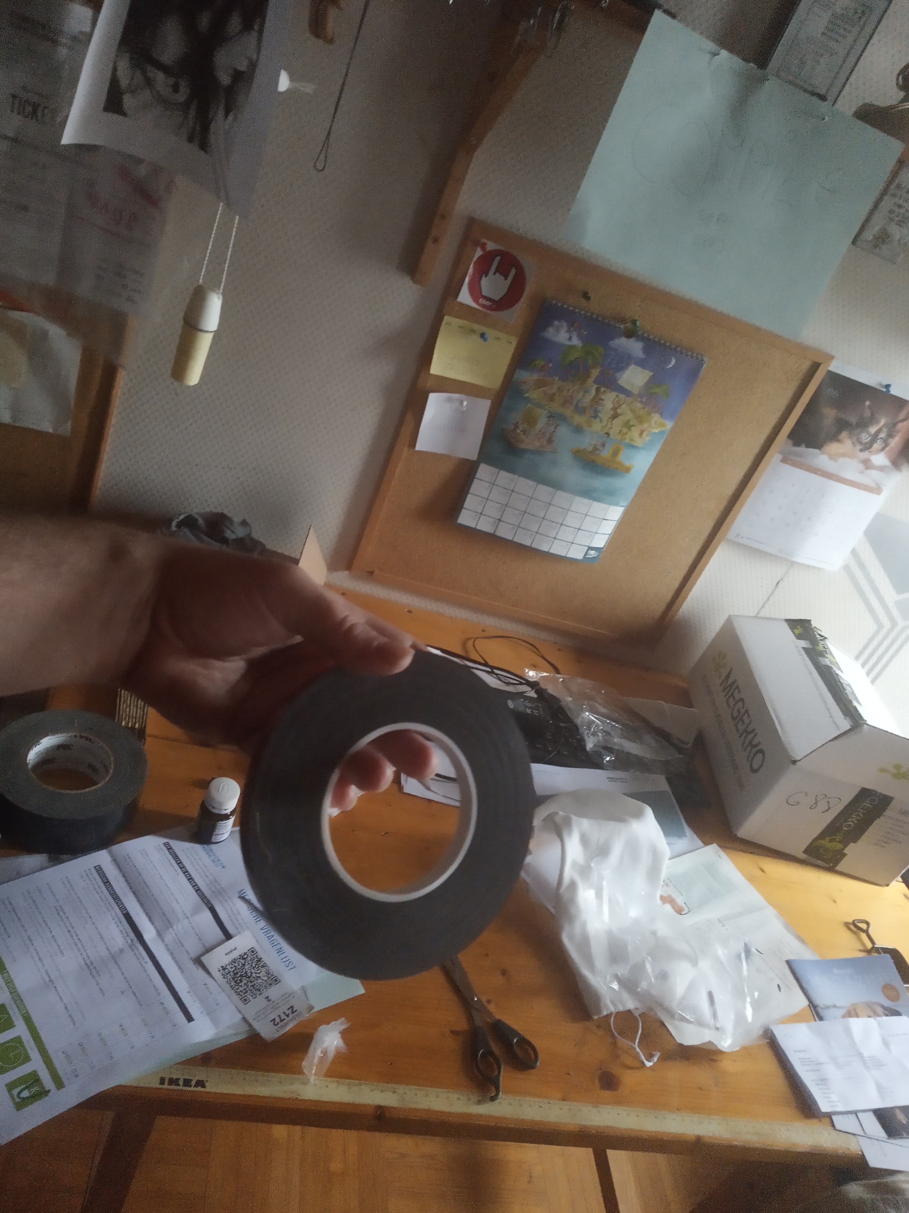 Since im not the handyman and no one in here ever was we gave it some thought and came up , instead of perfax (glue), which probably leads to half the room being plastered in my hands : "double-sticky"