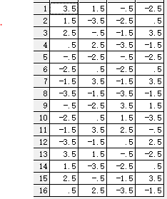 B=[(1.5,-0.5, 0.5,-1.5)T,(-0.5,-1.5,1.5,0.5)T] 是一个OLHD。代入(2.1),得到的不是 LH。这个矩阵如下