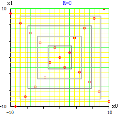 图 5 中,左图为 (5×2) OLH 与 Lin (2008) 定义的 O2 堆叠四次的结果, 右图为另一个 8×4 OLHD 与一个 8×4 正交设计堆叠四次的结果的点图。 每堆叠一次,增加的点都排列在两条直线上。无限堆叠下去的结果是不难想象的。 如果考虑到用张量积构造正交超立方存在的缺陷. 这样的矩阵不能算是 OLHD。定理 2 的充分性证明有效吗?第二堆叠法没有那么大的能力。