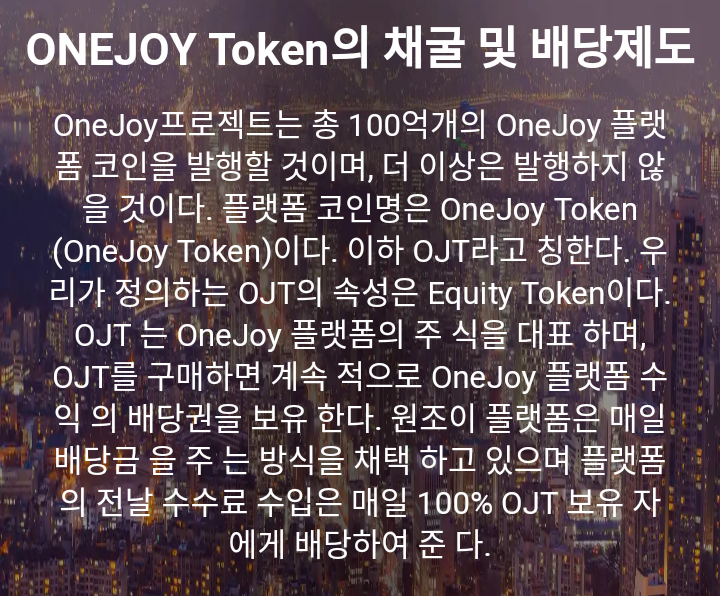 블록체인 기술을 기반으로 전자상거래와 결합한 원조이토큰 (OneJoy Token)입니다.