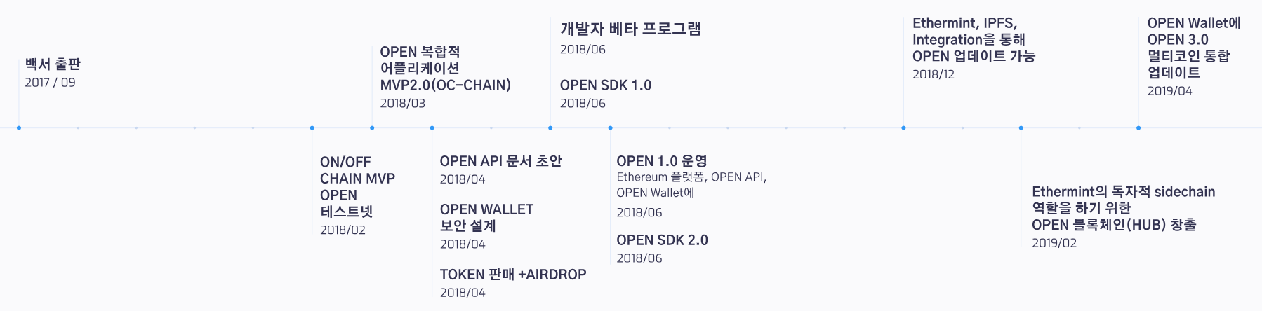 • 2018 / 7 OPEN 1.0 운영(Ethereum 플랫폼, OPEN API, OPEN wallet), OPEN SDK 2.0