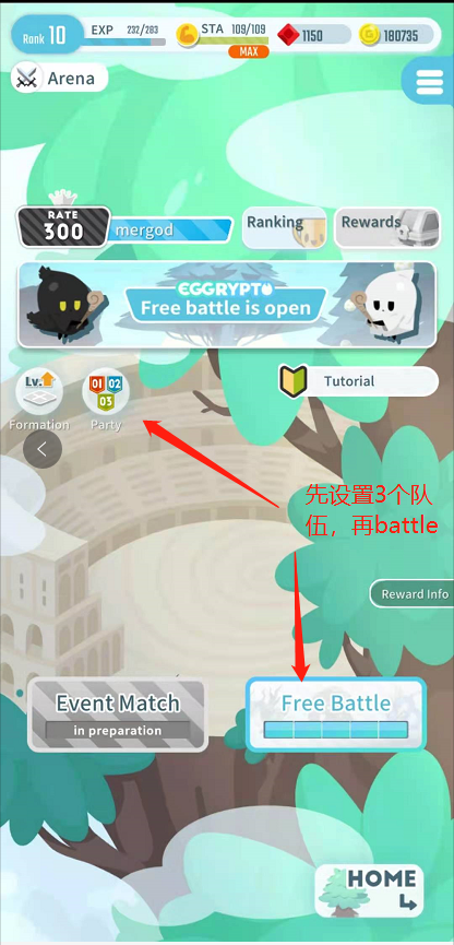 我们点击主界面左下角的arena,进入PK界面,点击party