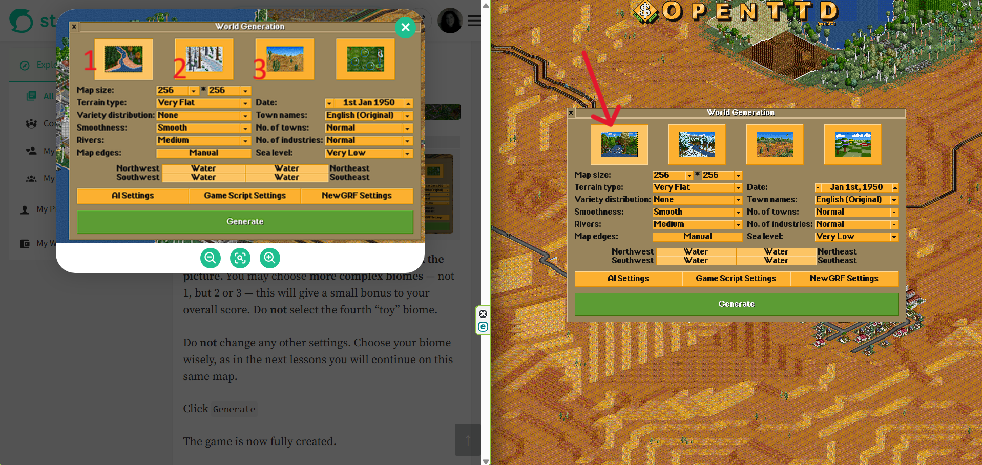 Je mag een wat complexere biome kiezen (2 of 3), maar vermijd de 'toy' biome. De rest van de instellingen laten we ongemoeid.