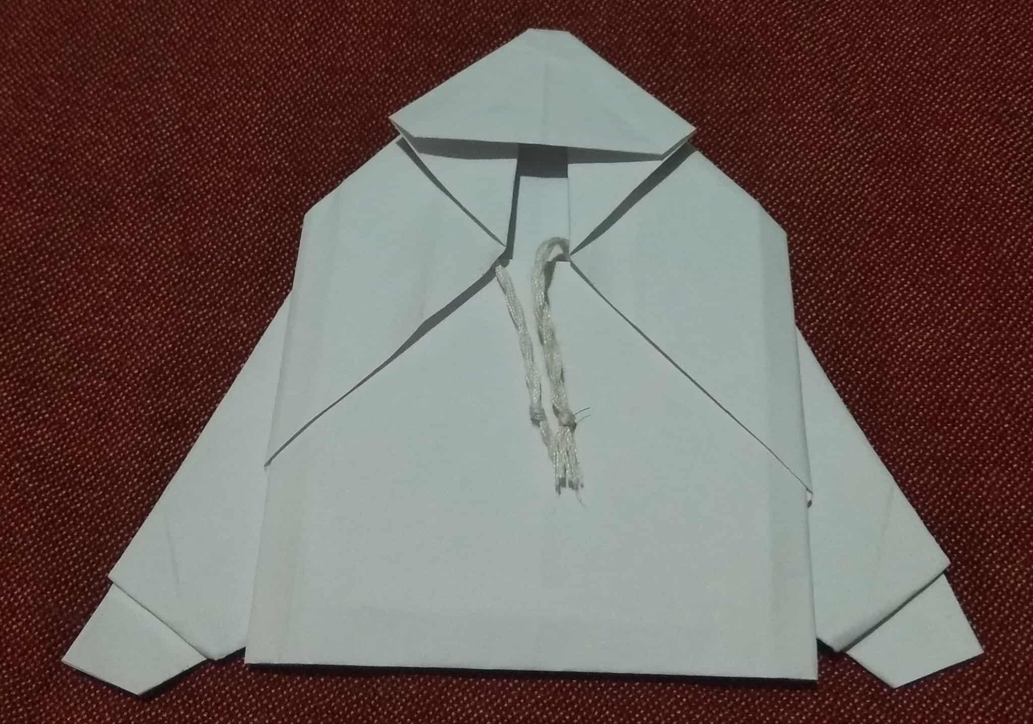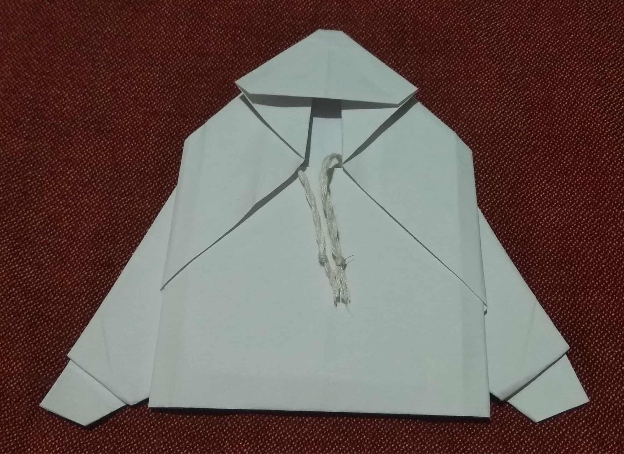 ভাঁজ খুলে আবারও ছবির মতো করে ভাঁজ করে হুডি বানিয়ে নিয়েছি।