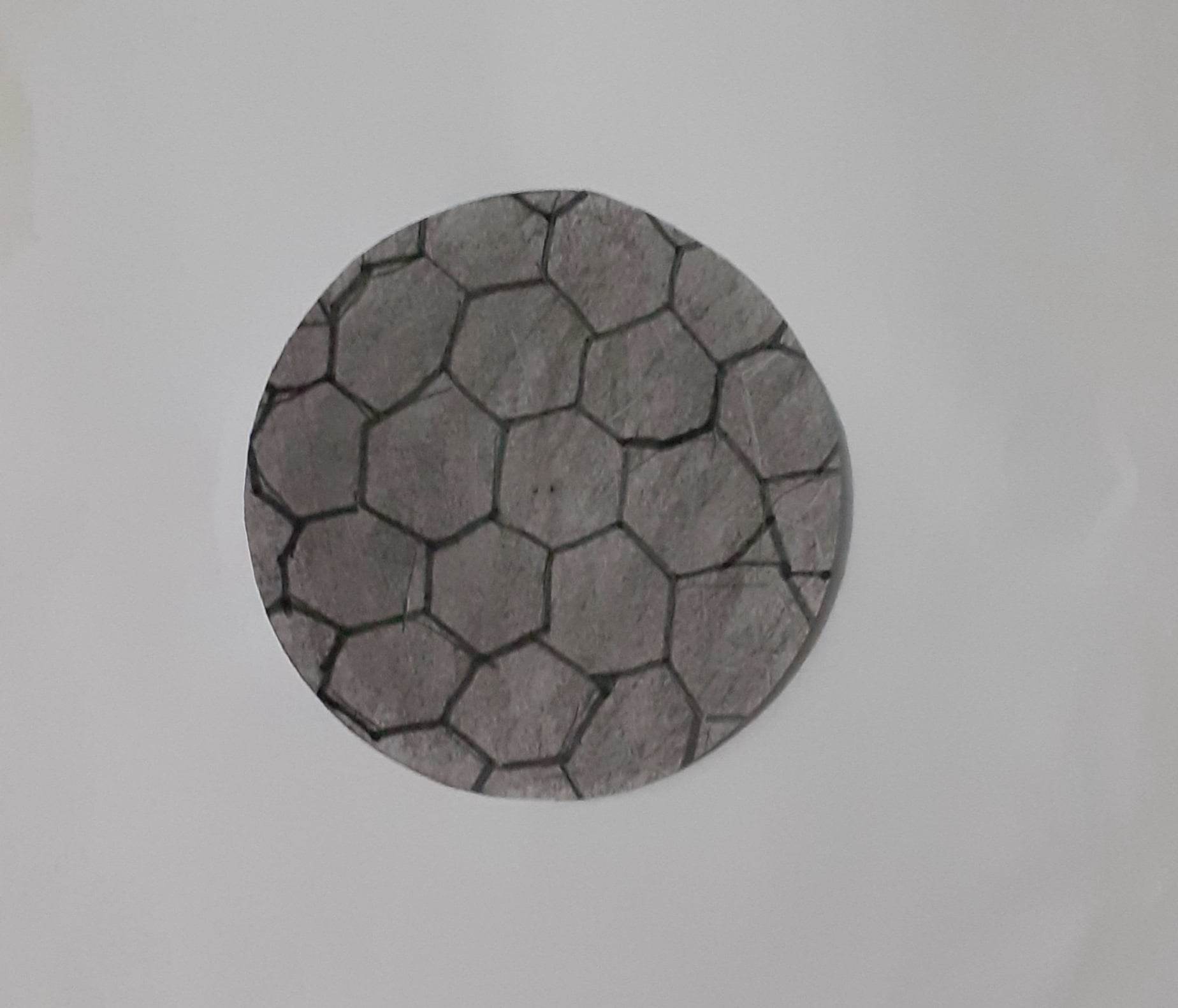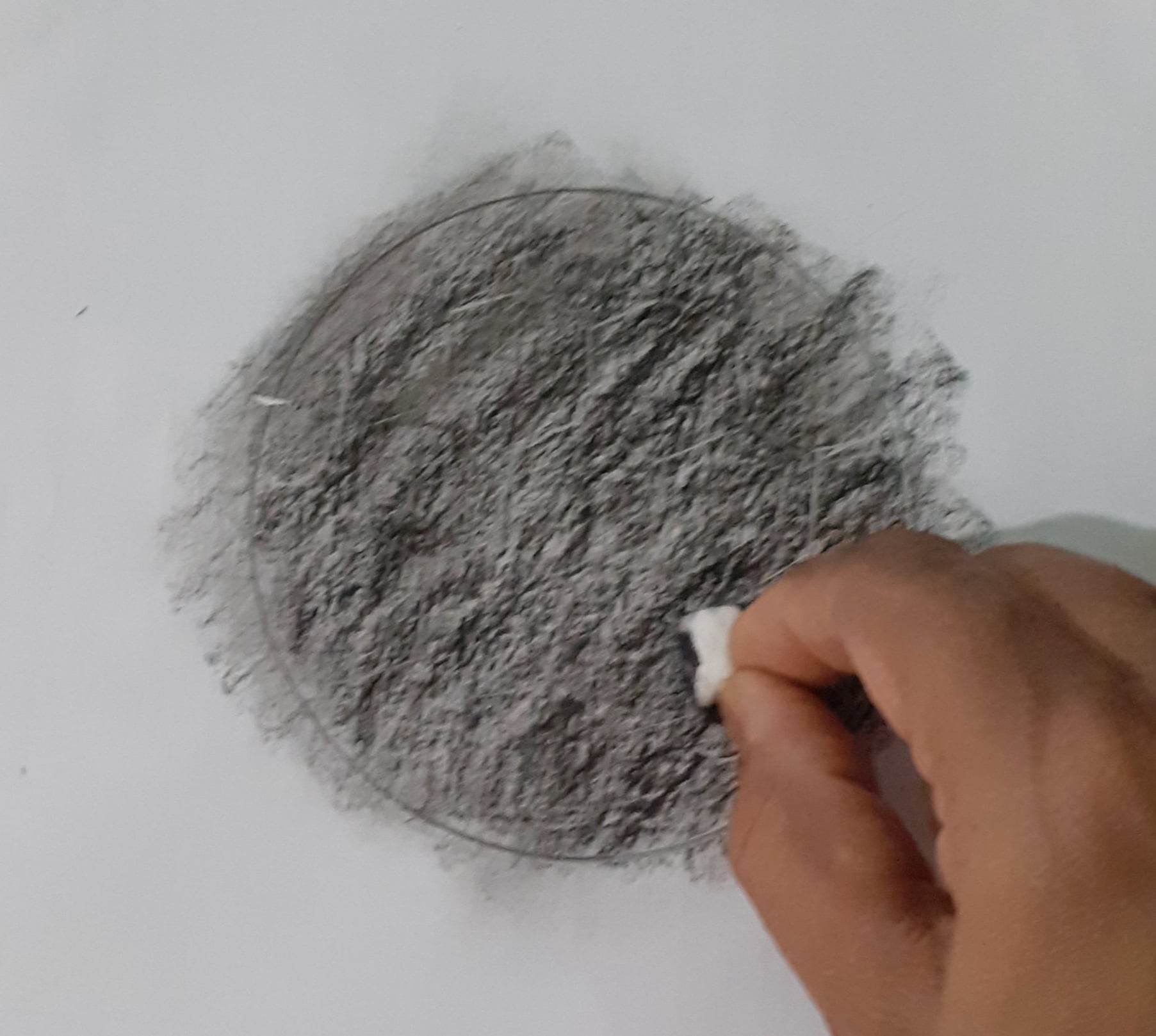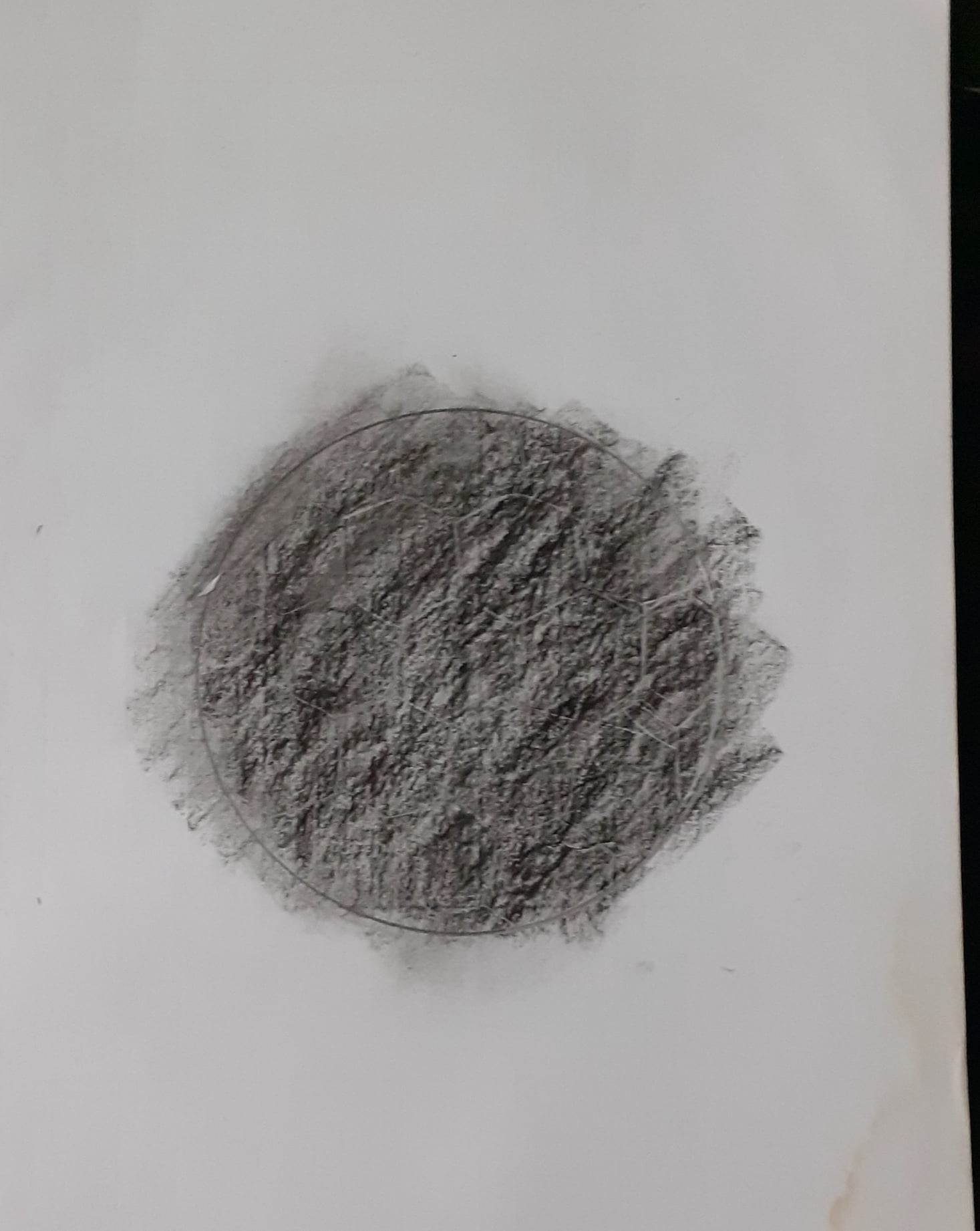 বৃত্তটিকে কাল মোম রং দিয়ে রং করে নিতে হবে। এবং এক টুকরো তুলা দিয়ে ঘষে নিতে হবে রং যেন সব জায়গায় একই রং হয়।