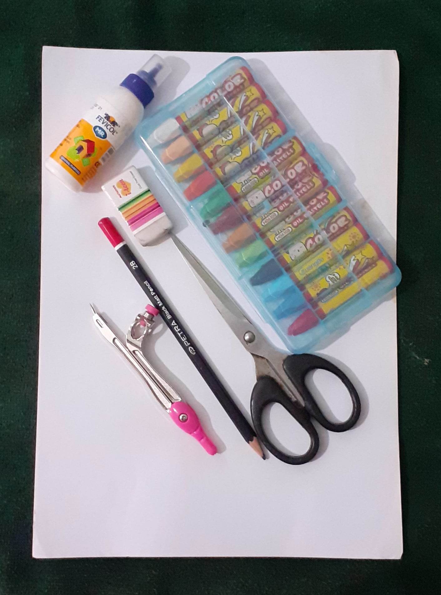 সাদা কাগজে প্রথমে পেন্সিল কম্পাস দিয়ে একটি বৃত্ত একে নিতে হবে।