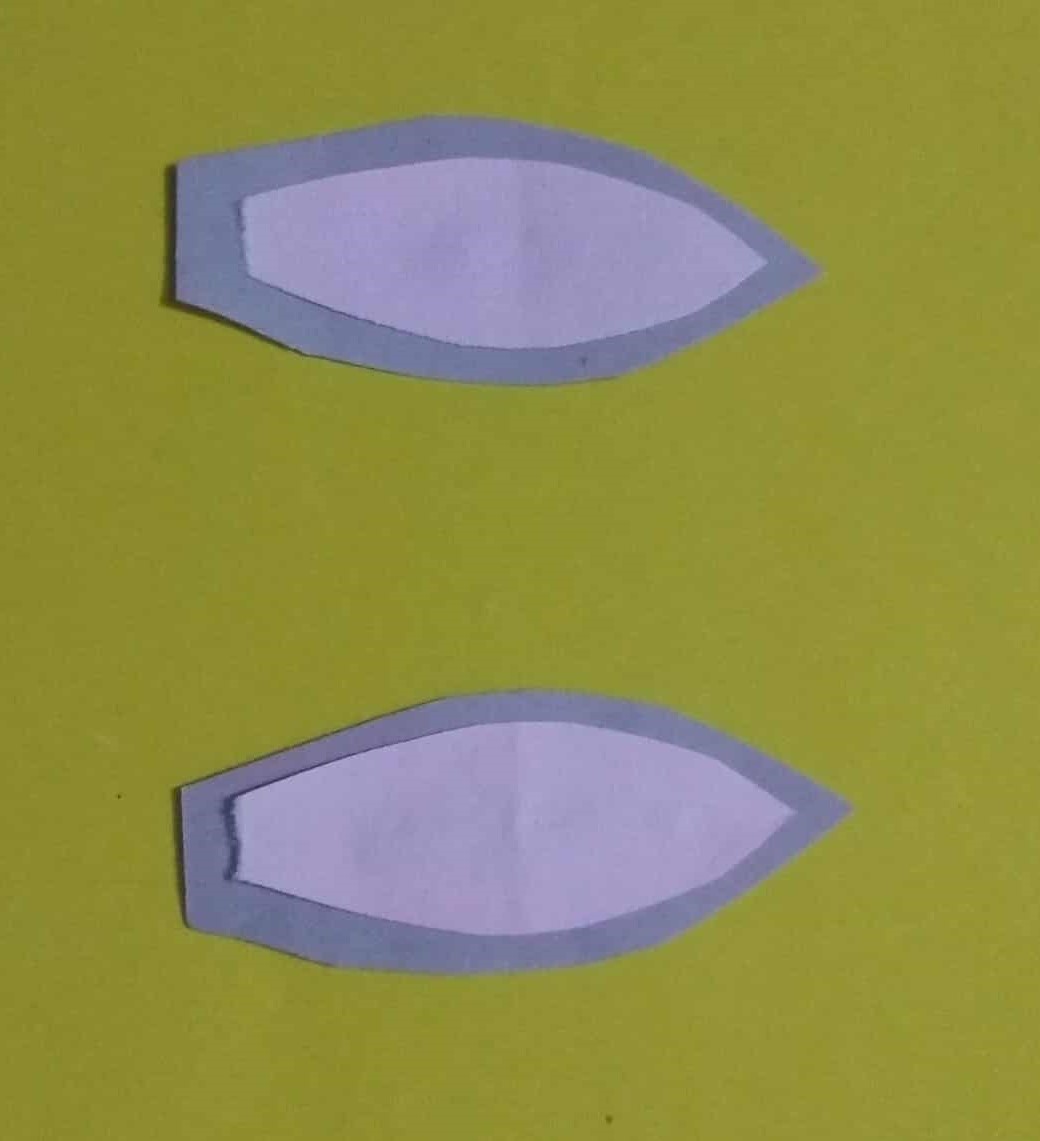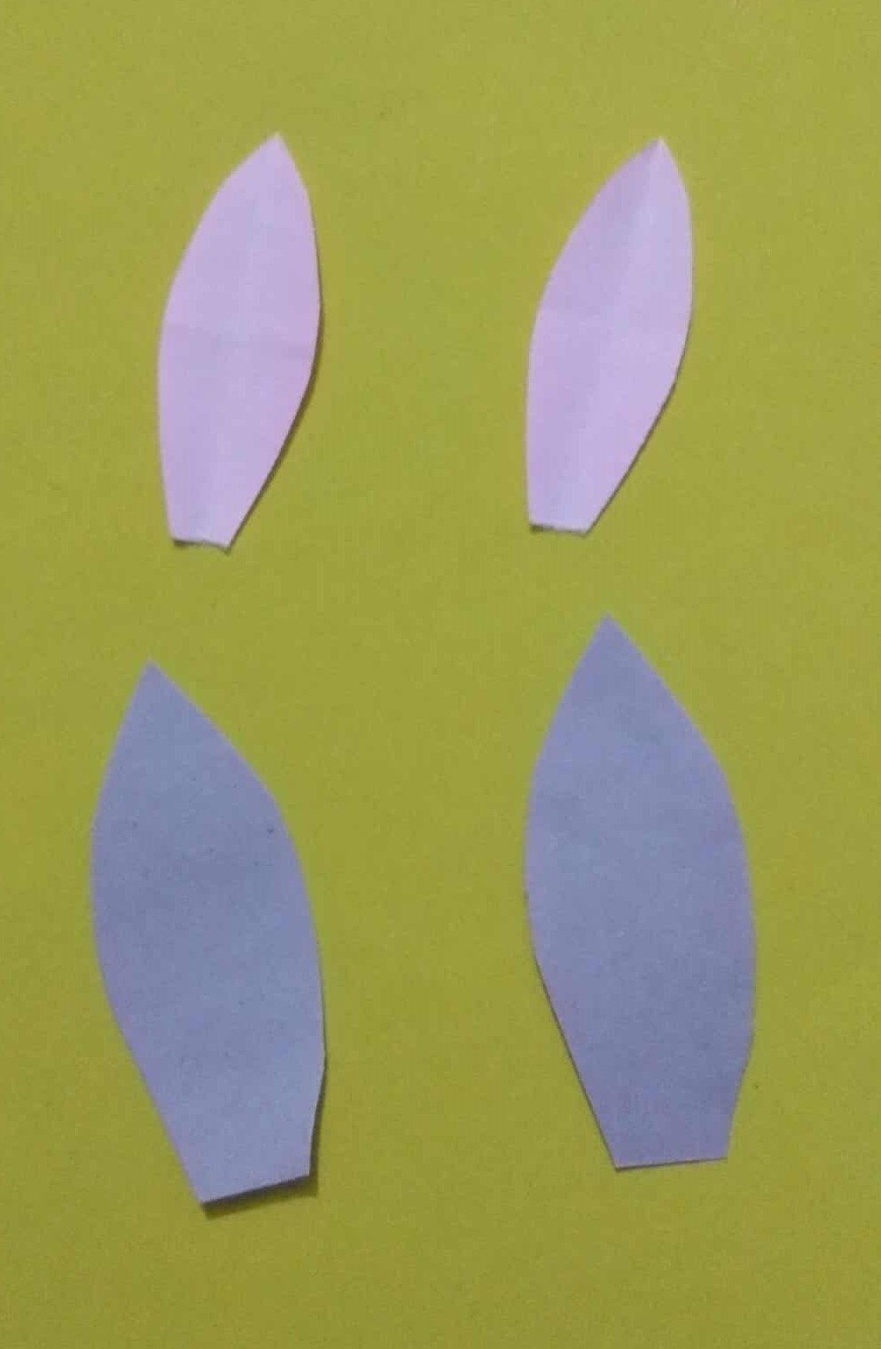 দু'রং এর কাগজ খরগশের কান কেটে নিয়েছি। একটির সাথে অন্যটি গাম দিয়ে লাগিয়ে নিয়েছি।