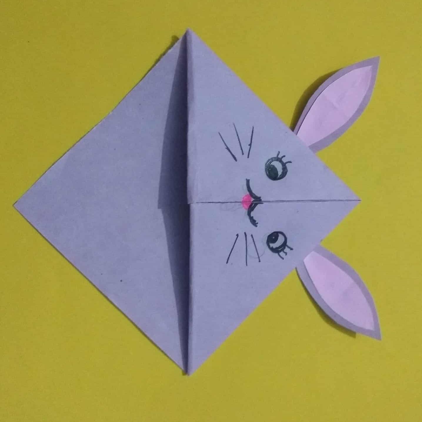 খরগোশ ডিজাইন এর বুক মার্কার এর অরিগ্যামির ধাপ সমূহ