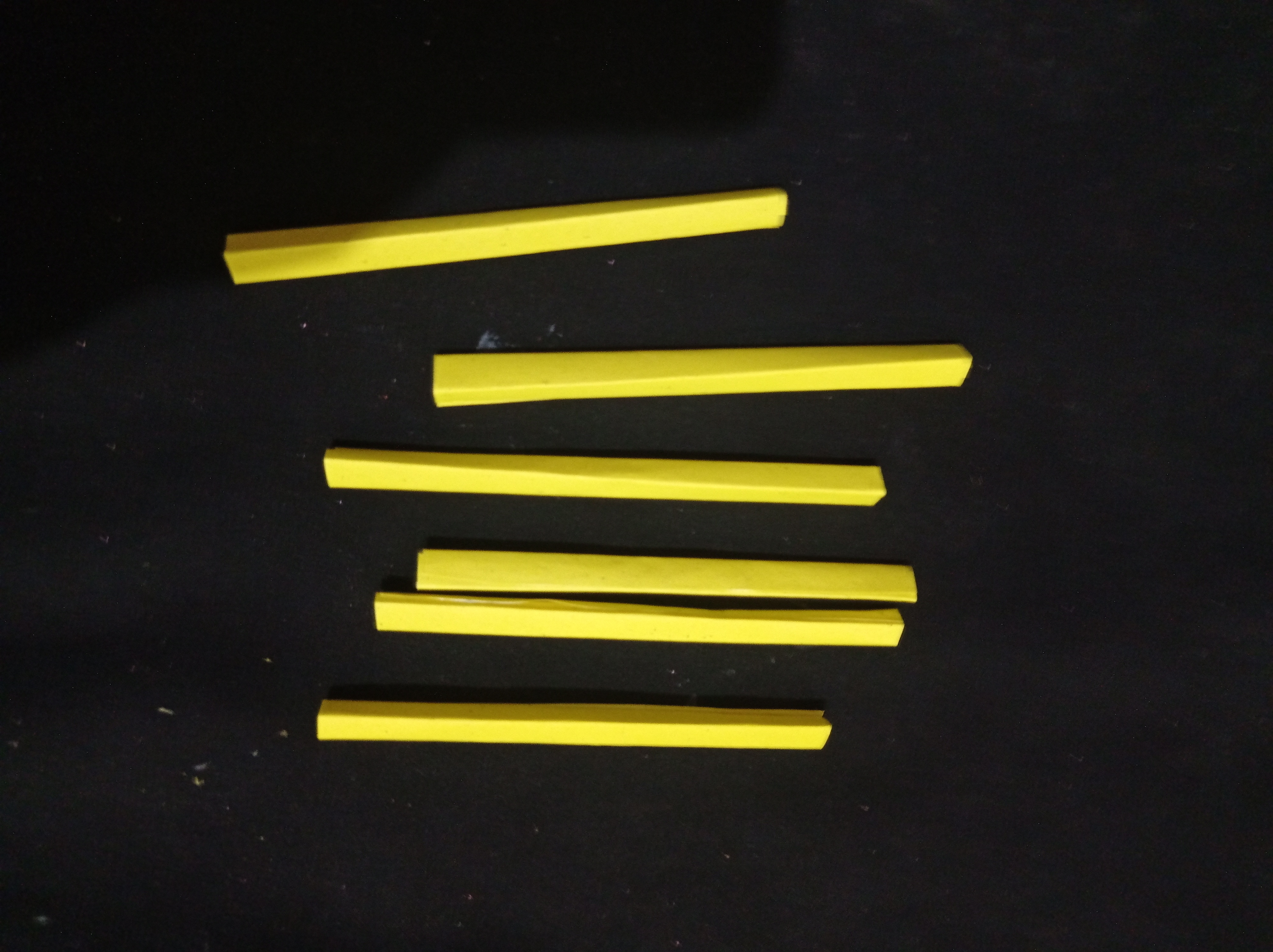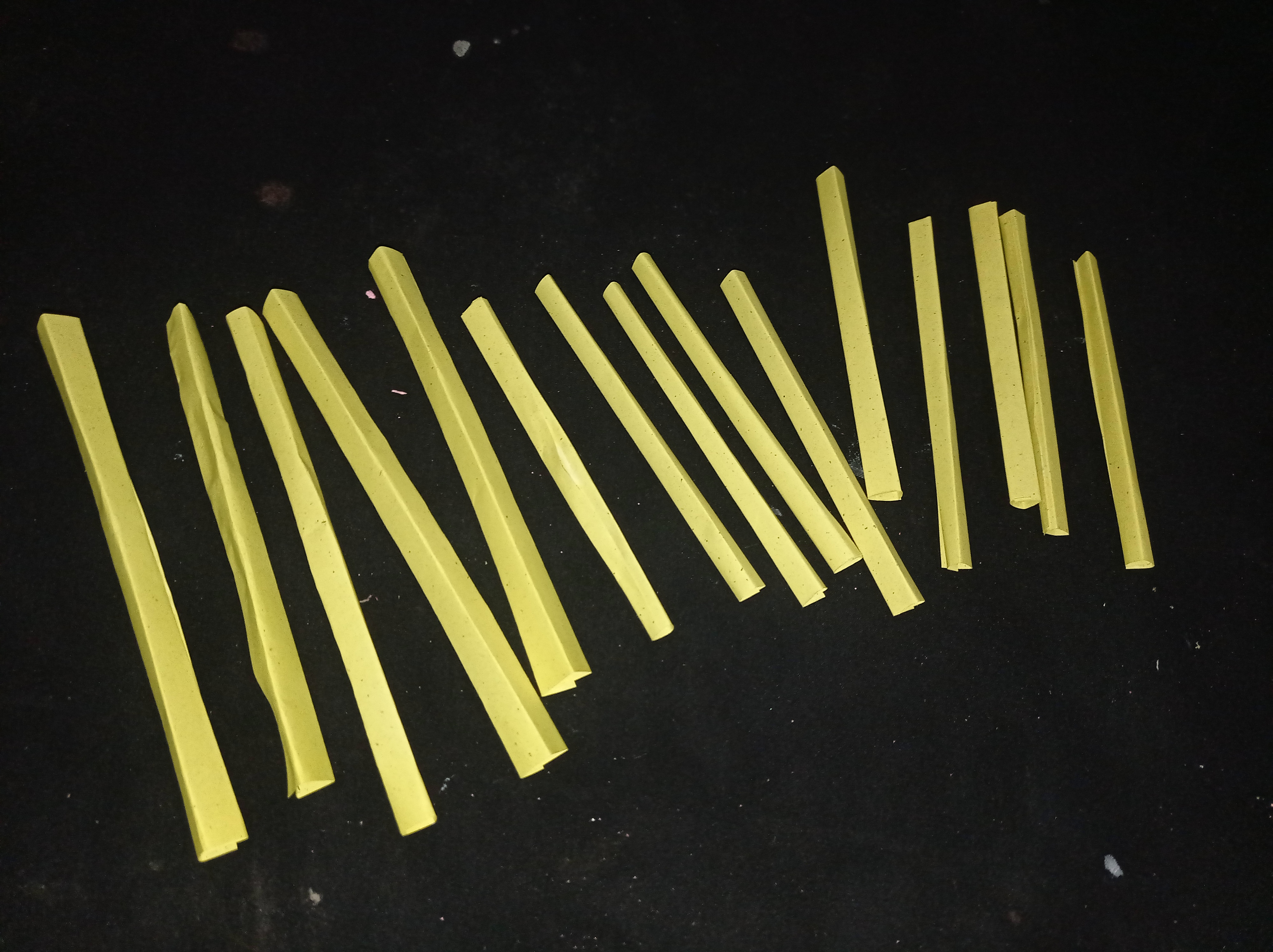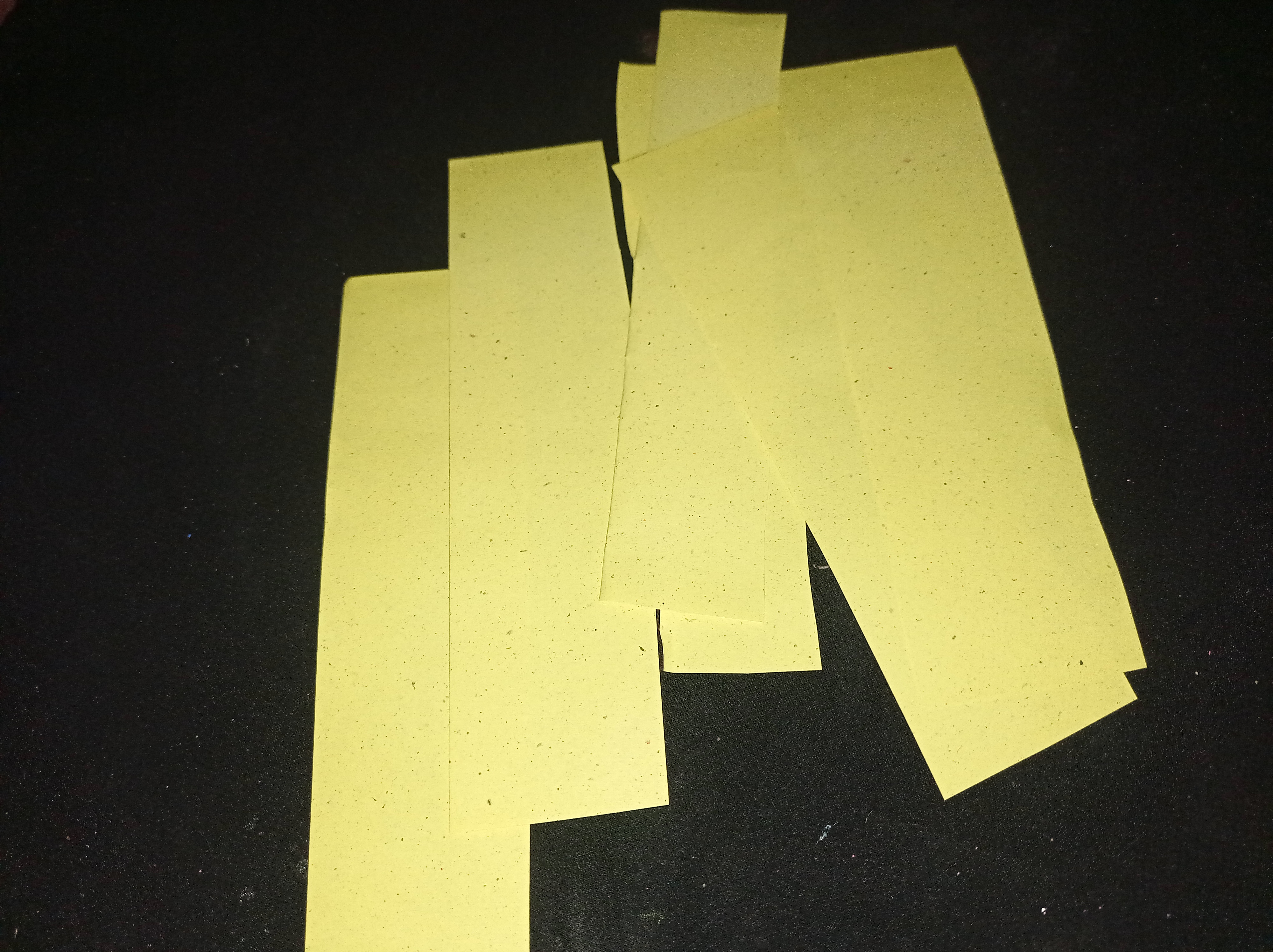 প্রথমে আমি একটি রঙিন কাগজ নিলাম। এরপর আমি কাগজটাকে কয়েকটা ছোট এবং কয়েকটা বড় আকৃতির এরকম করে লম্বা লম্বা করে কেটে নিলাম।