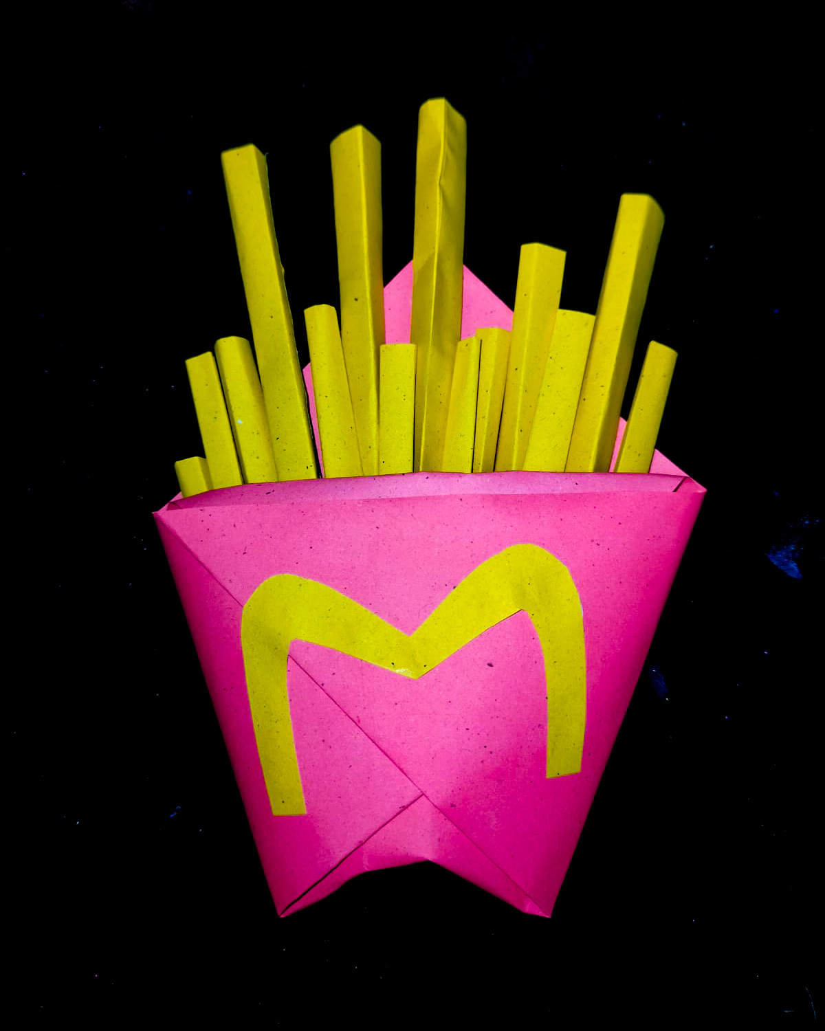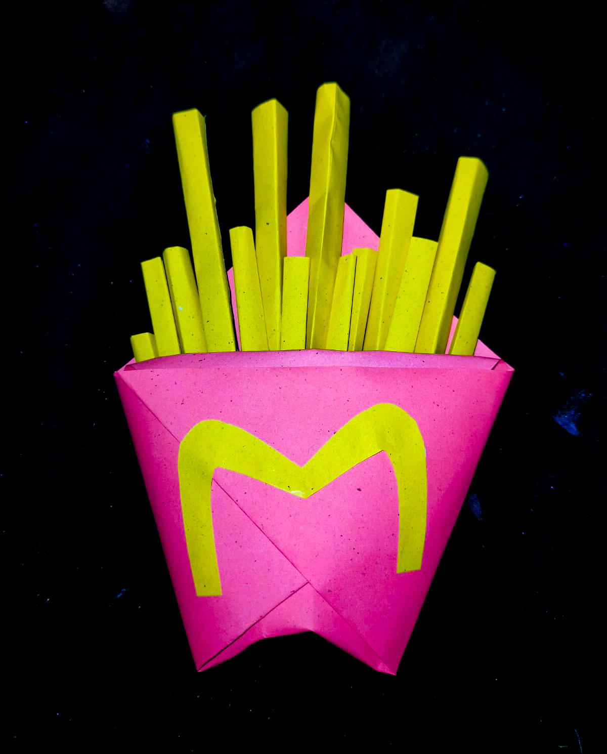 অরিগ্যামি : রঙিন কাগজ দিয়ে ফ্রেঞ্চ ফ্রাই তৈরি।
