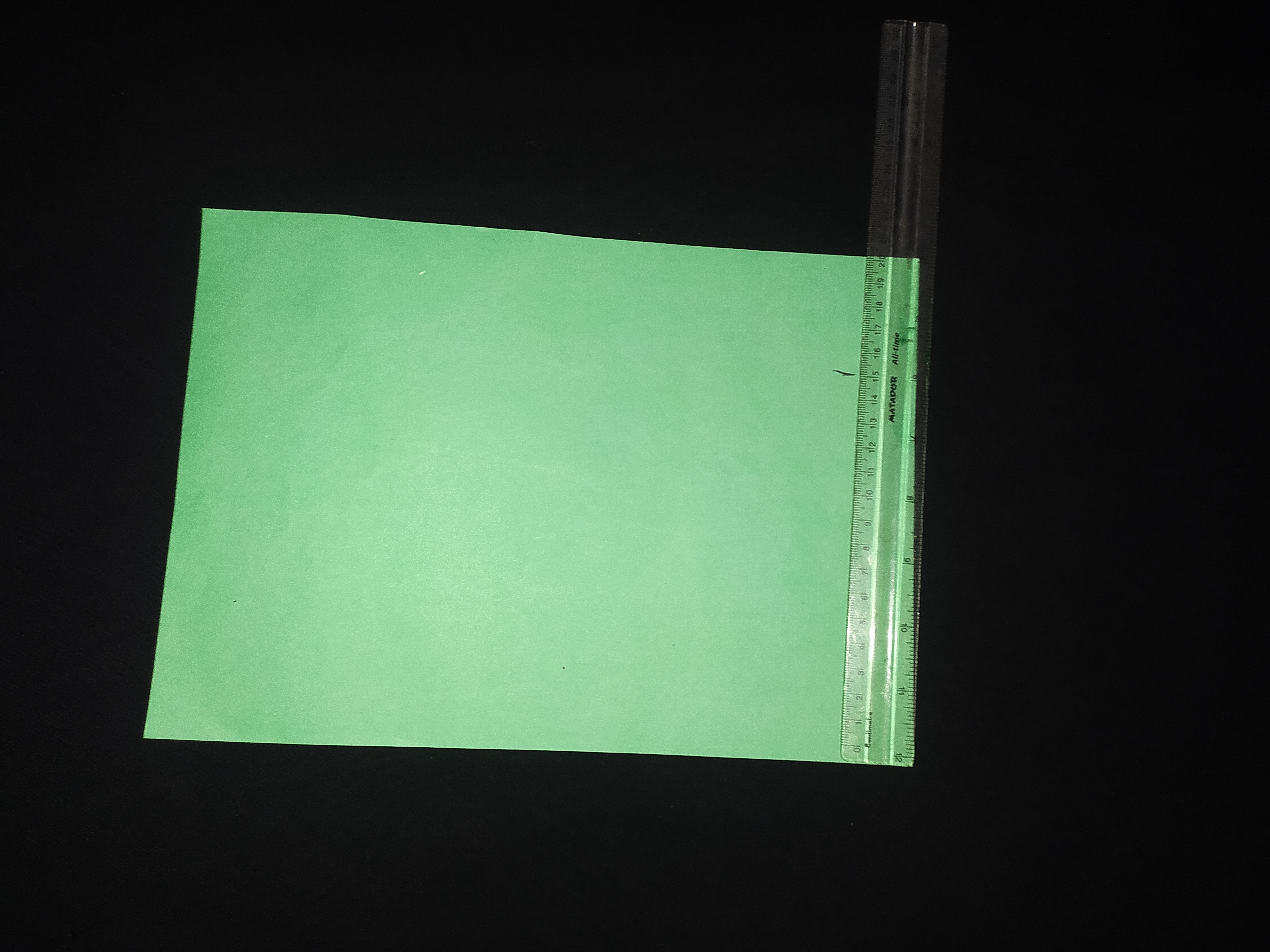 প্রথম ধাপে রঙ্গিন কাগজটিকে দুই সাইডে ১৫ ইঞ্চি করে হাত দিয়ে কেটে নিয়েছে। ১৫ ইঞ্চি করে না নিলেও কাগজটি যেন বর্গাকৃতির হয়। তাহলে কাপ তৈরি করতে কোন ঝামেলা হবে না।
