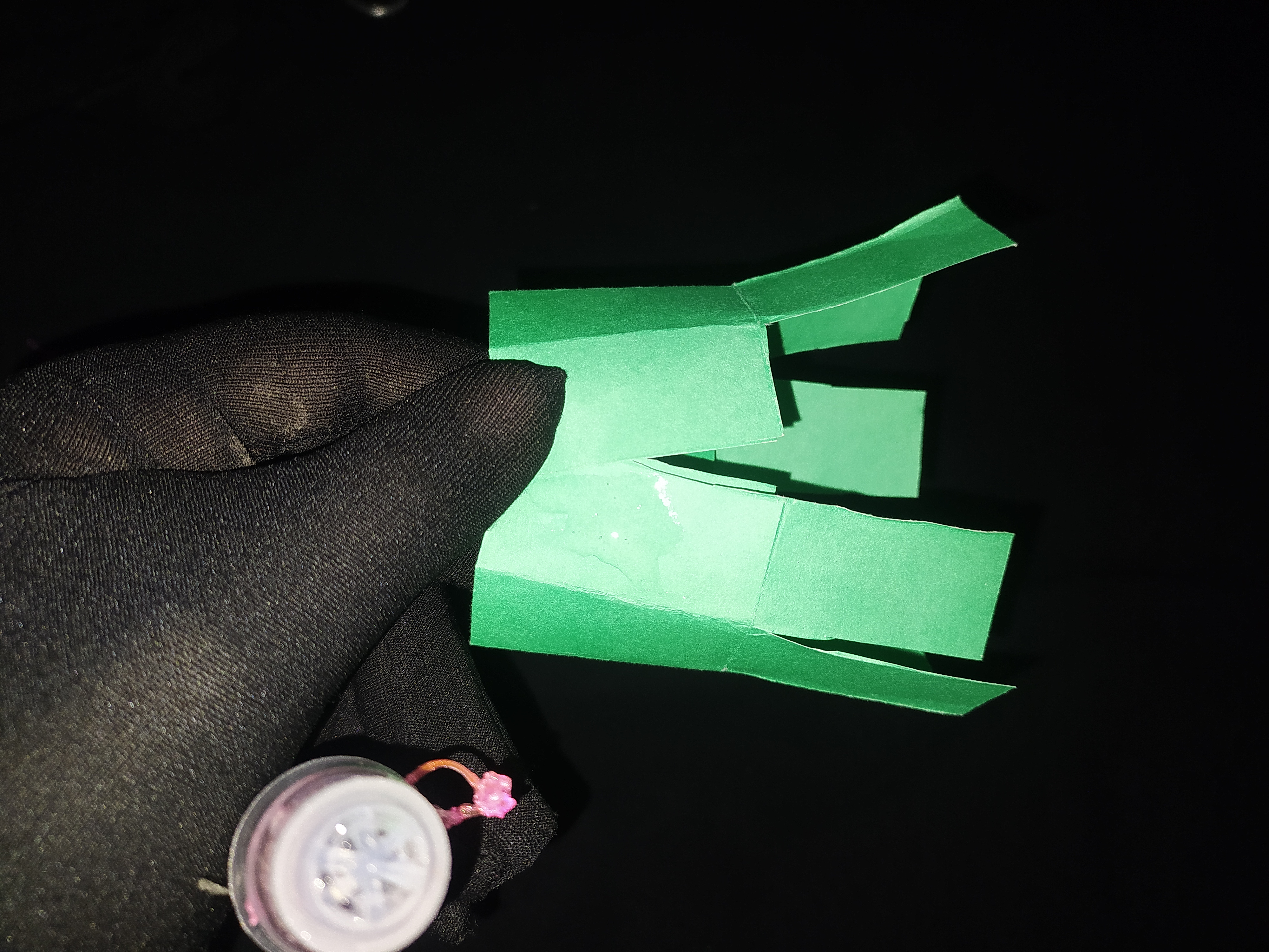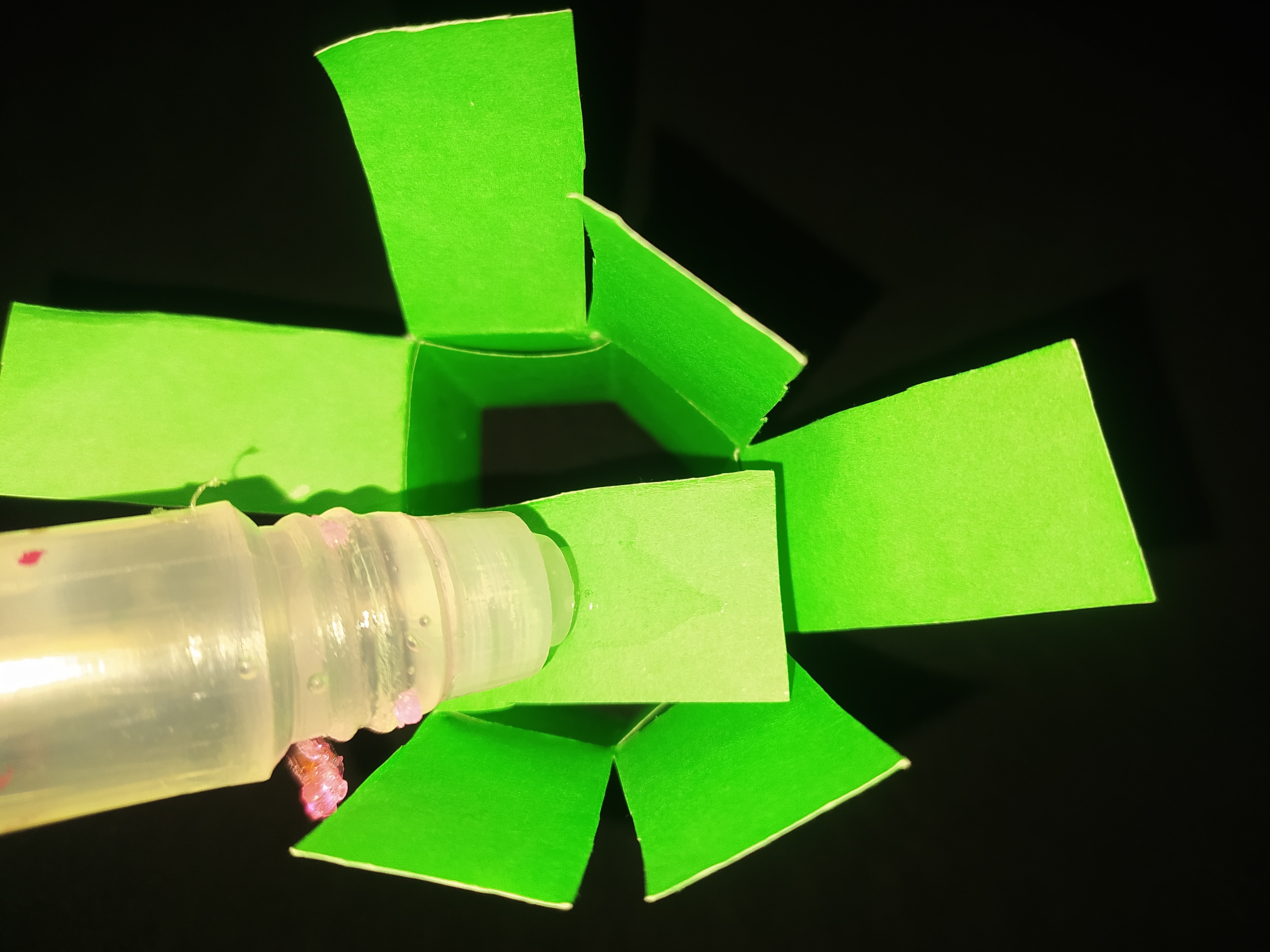 এখন যে অংশটা কেটে নিয়েছি, সেই অংশটি অপর প্রান্তের সাথে গাম দিয়ে লাগিয়ে দিলাম। যাতে করে ভাজ করা কাগজটি একটি বৃত্তের পরিণত হবে।