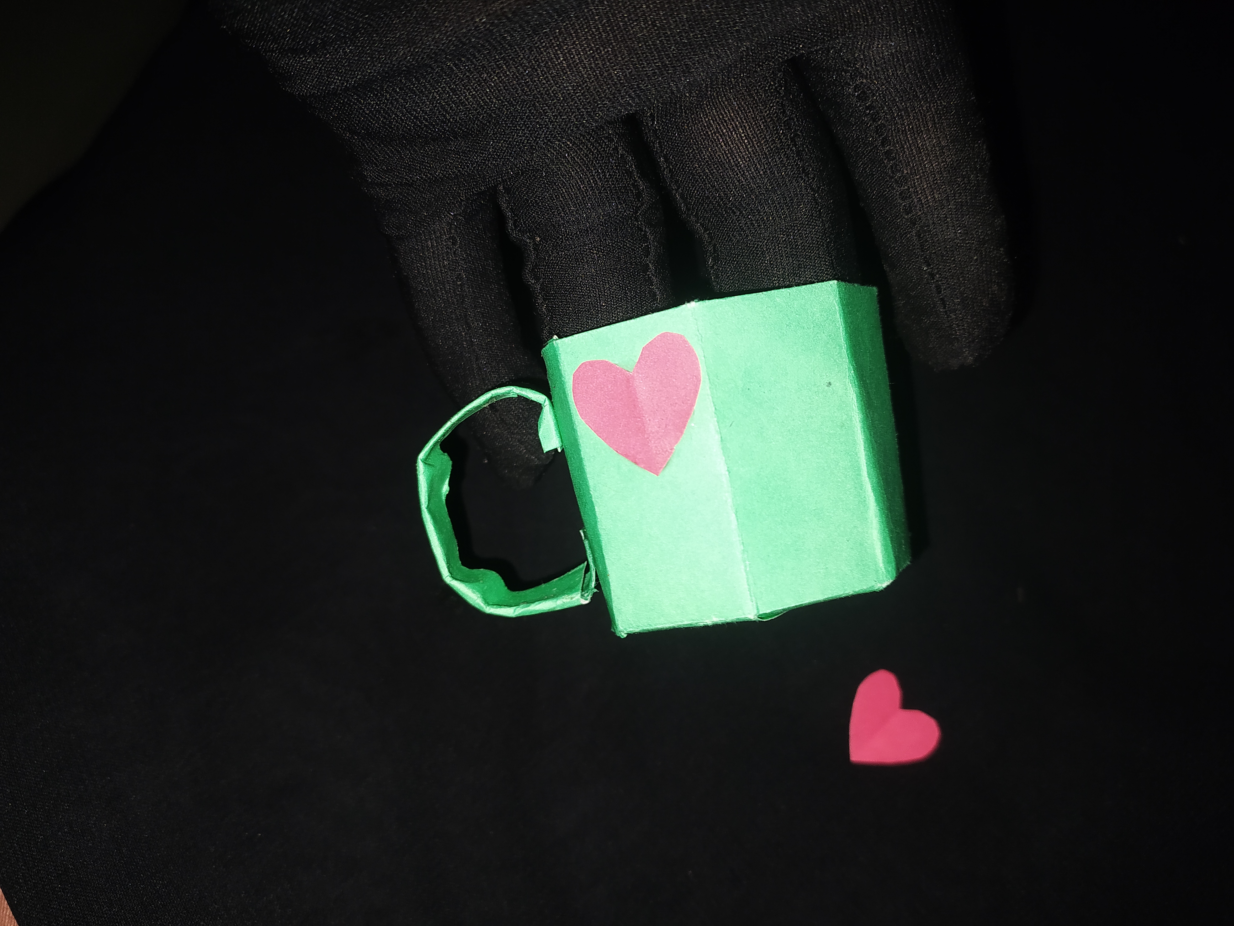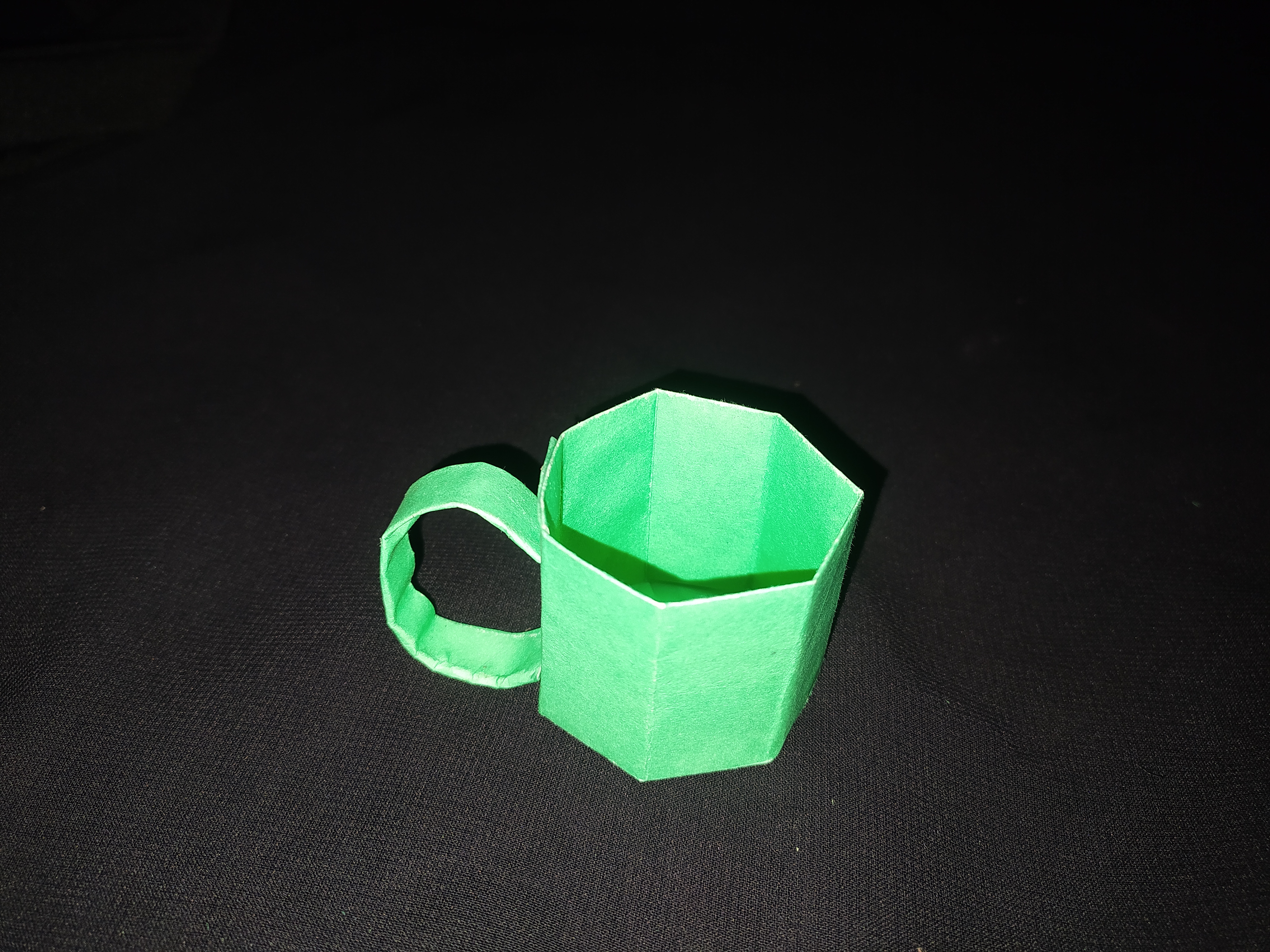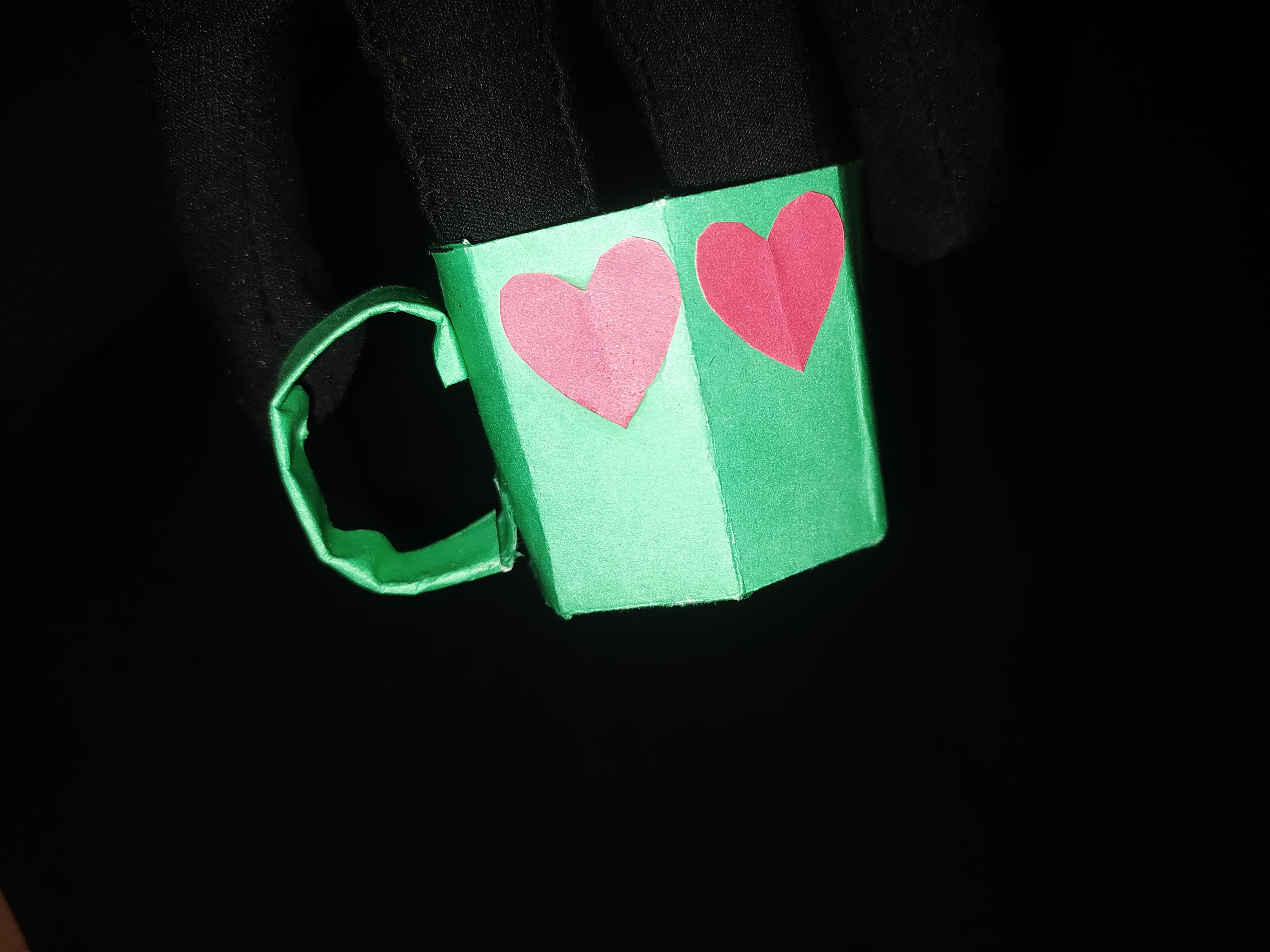 তারপর রঙিন কাগজের একটি হাতল কাজ করে নিলাম। গোলাকৃতি কাপের সাথে এই হাতলটি লাগিয়ে দিলাম।