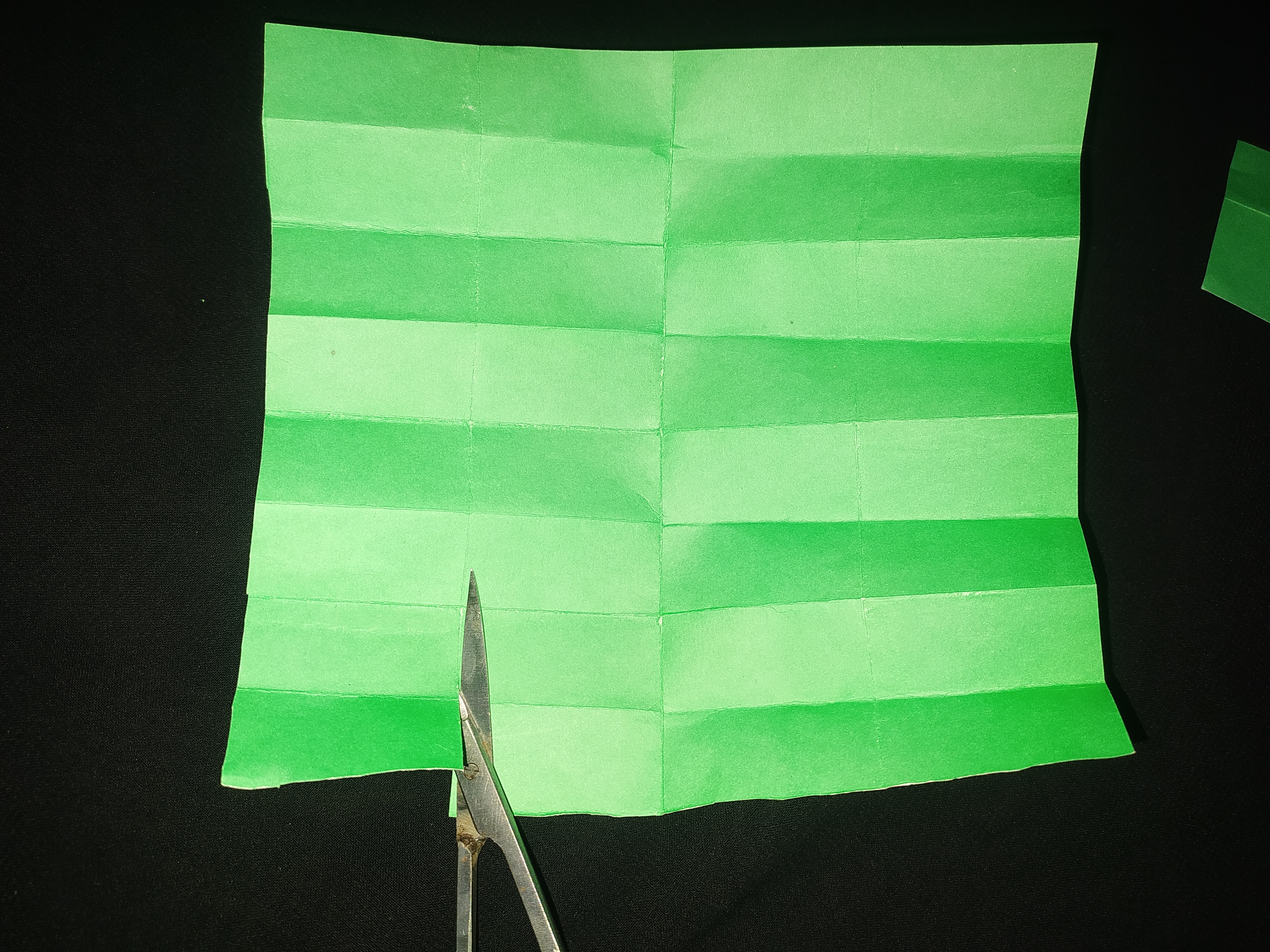 ভাঁজ করার রঙিন কাগজটিকে মাছখানে রেখে আবার আরেকটি বাজ করে নিলাম। সবগুলো একত্রিত করে ভাজ করে নেওয়ার ফলে, রঙিন কাগজটি অনেকগুলো বাজ হয়ে গিয়েছে।