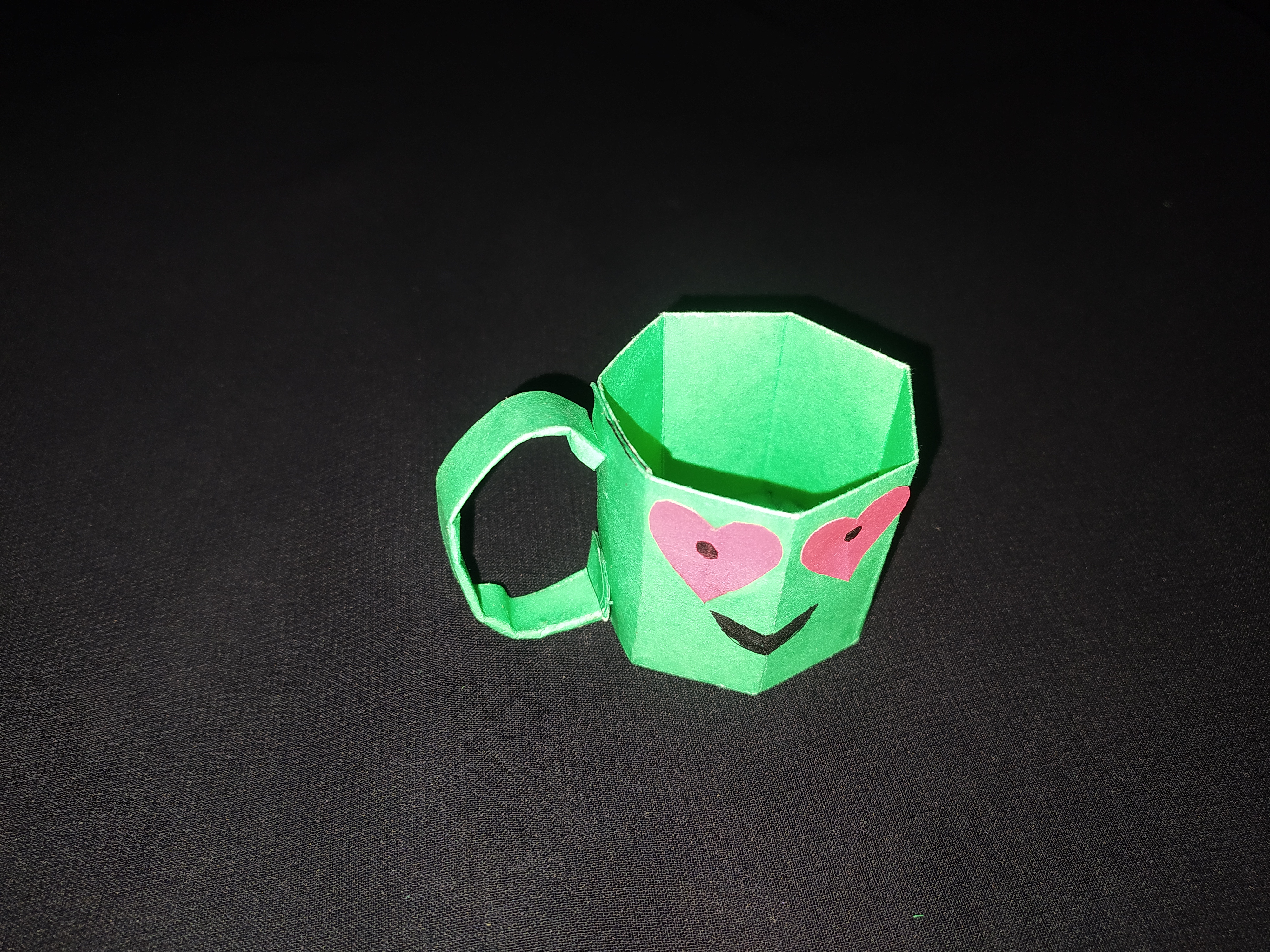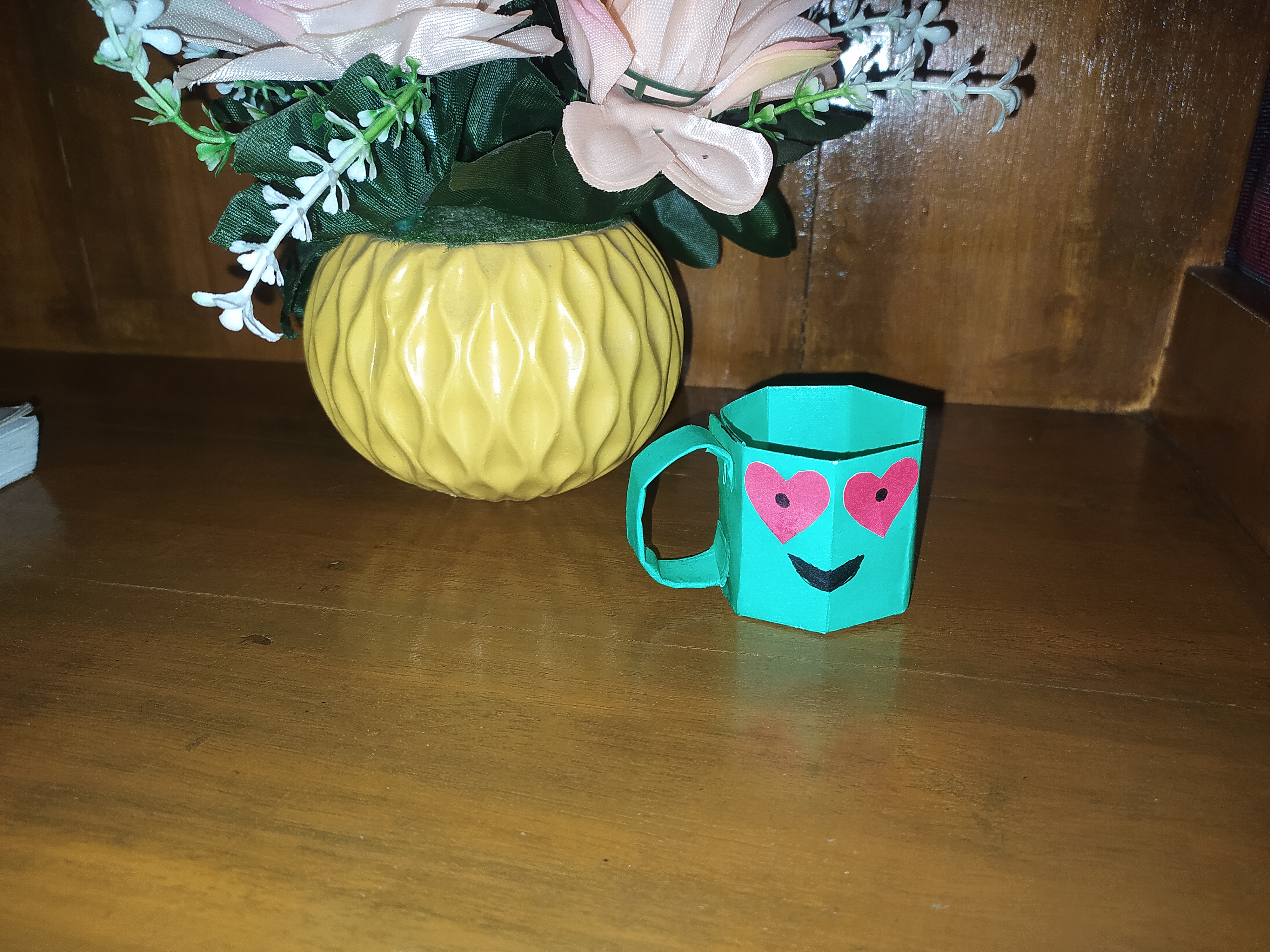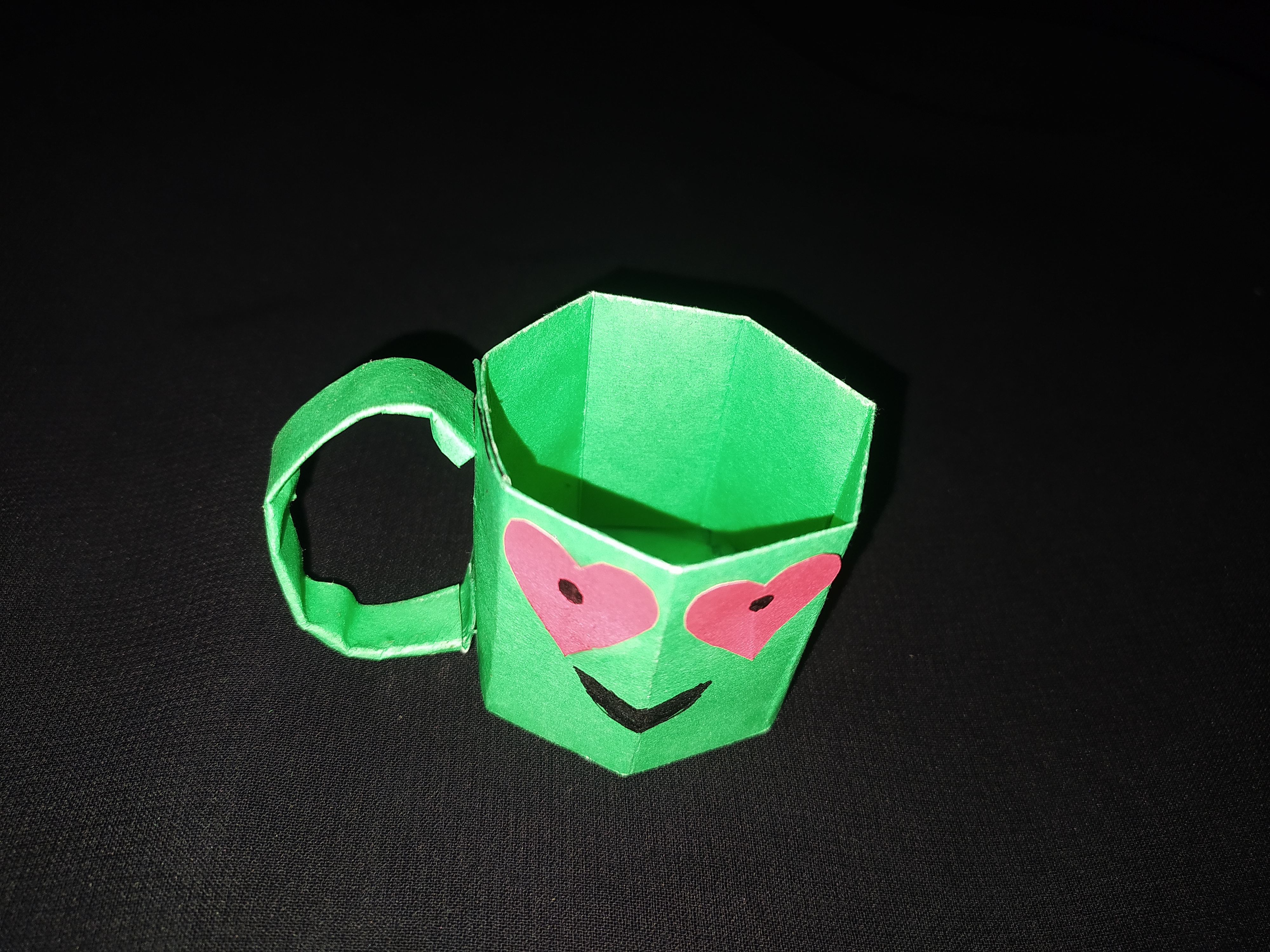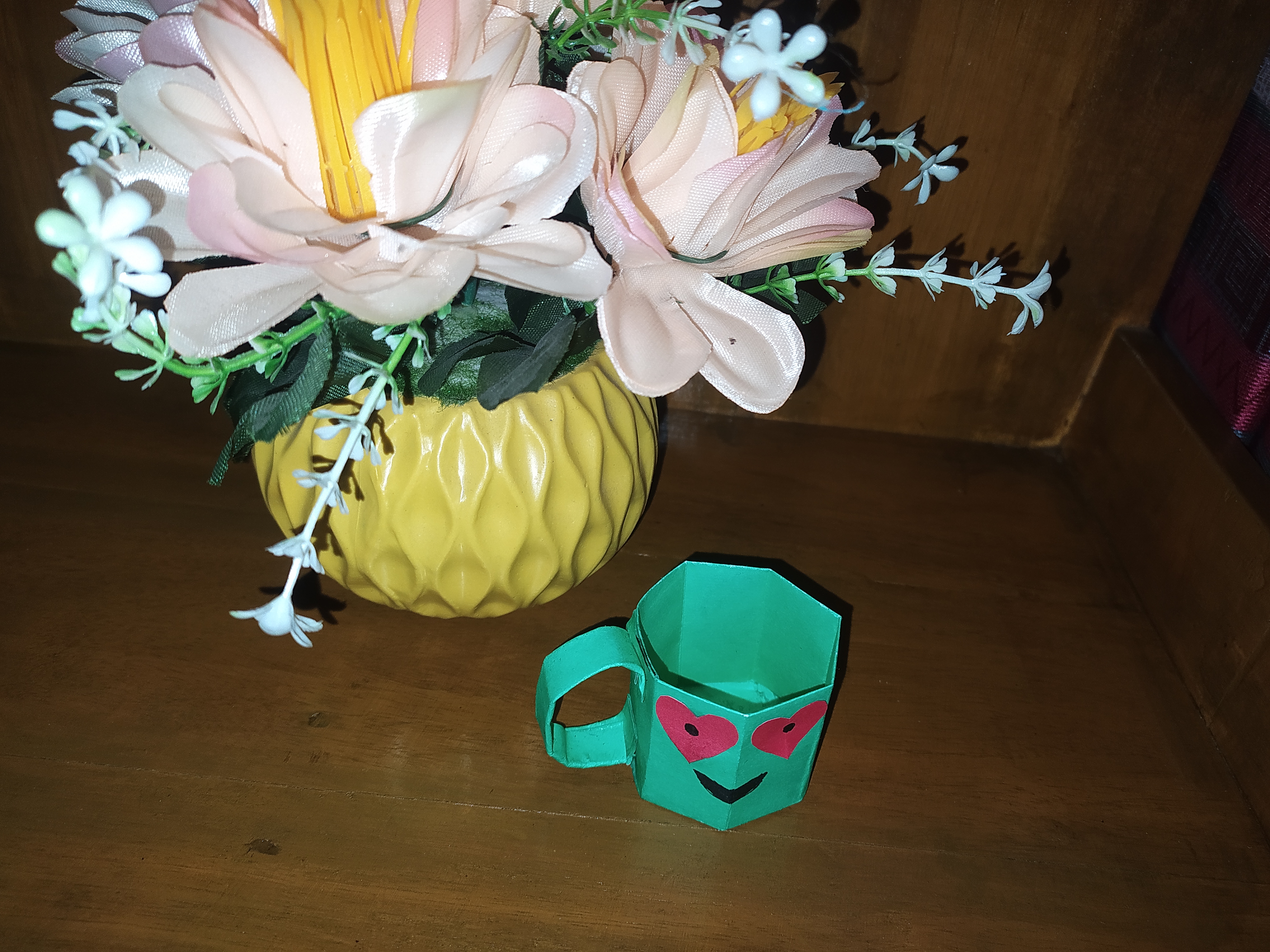 জি ভাইয়া ছোট ছোট কাগজ দিয়ে সুন্দর সুন্দর জিনিস তৈরি করলে ঘরের সৌন্দর্য বৃদ্ধি পায়। ভাইয়া কাপটি তৈরি করার পর ভাবলাম এর মধ্যে লাভ আকৃতির দুটি চোখ দিয়ে দেয়।আসলে এই দুটো লাভ দেওয়ার কারণেই কাপটি আরো সুন্দর হয়েছে। ধন্যবাদ ভাইয়া।