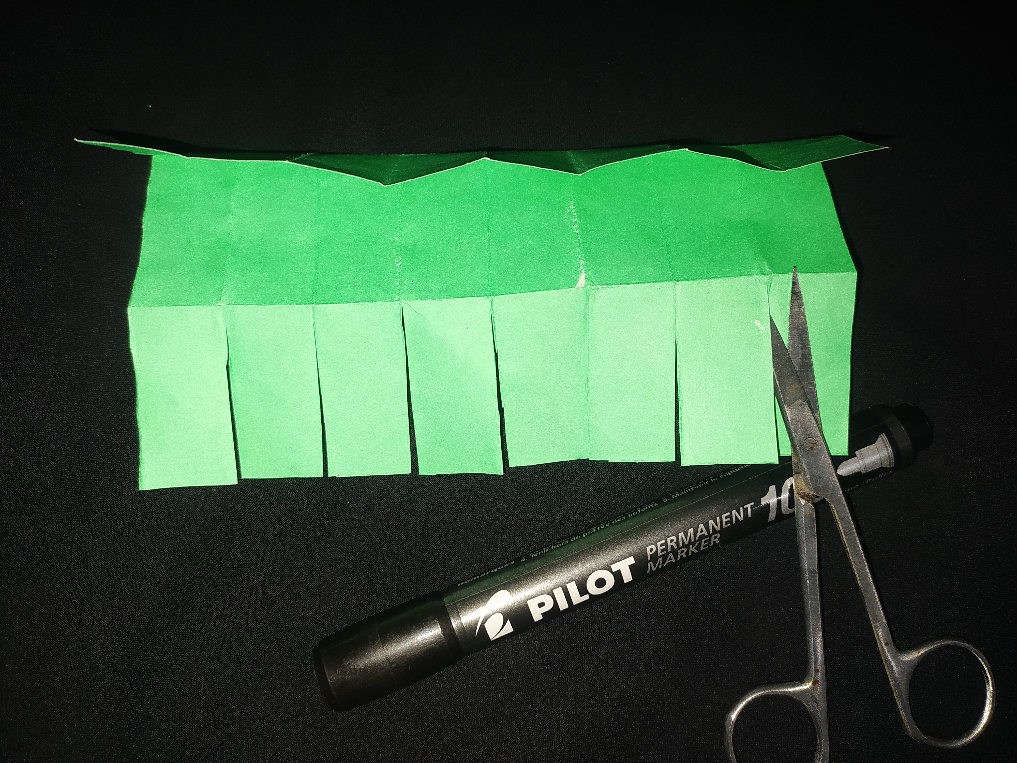 এ পর্যায়ে তিনটি ভাজ থেকে, একটি বাজের যতগুলি ভাজকরা লাইম আছে সবগুলো কেটে নিবো। তারপর এক সাইড থেকে। একটি ভাঁজ কাগজটি থেকে আলাদা করে নিবো। যাতে করে কাপটি বানাতে সুবিধা হয়।