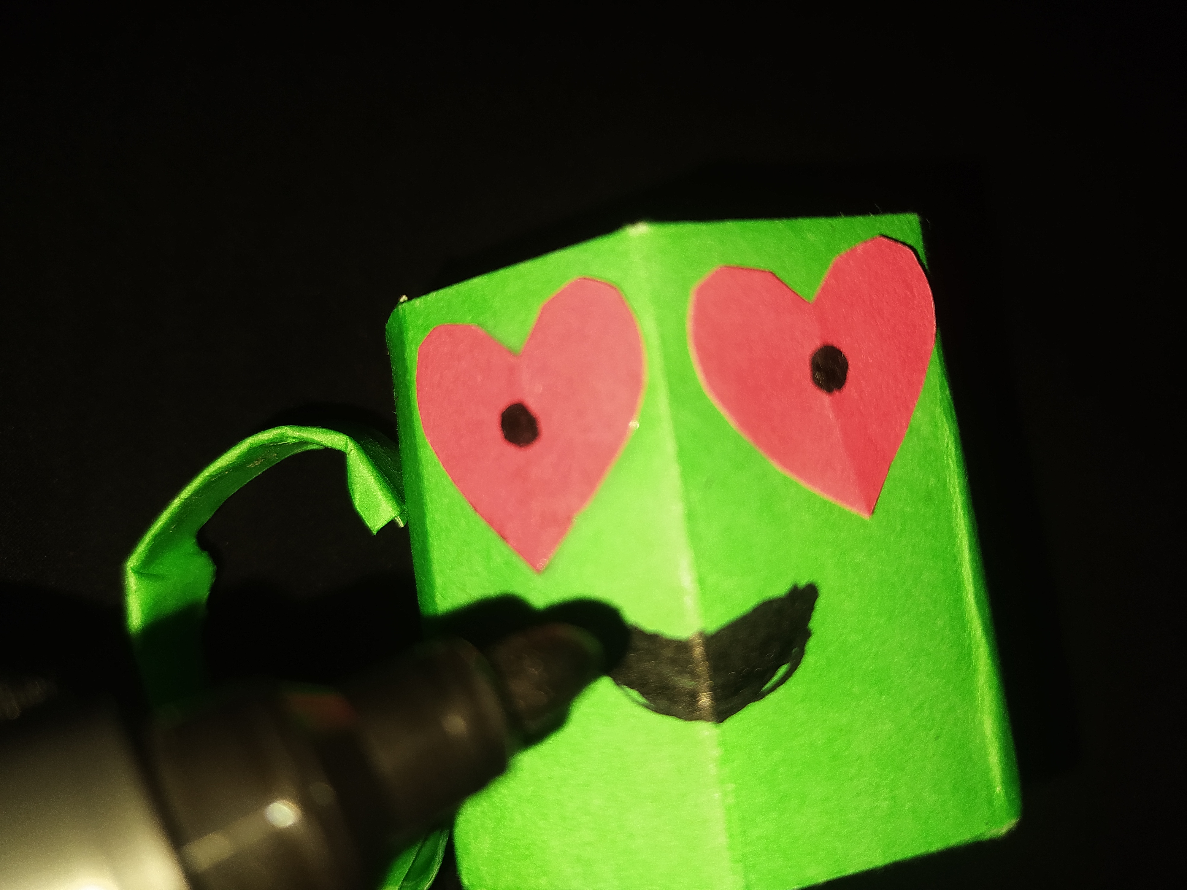 এখন মার্কার দিয়ে লাভ গুলোর মাঝখানে একটি করে ফোটা ও একটি হাসি মুখ এঁকে নিলাম। এভাবে হয়ে গেল আমার একটি কাপের অরিগ্যামি।