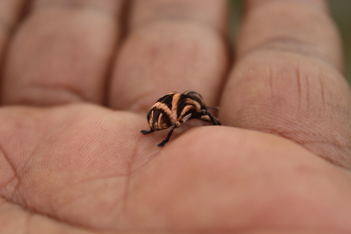I want to invite you, watching together, about the strange and unique animal, which is inside the aceh forest, the long nose beetle, which has a blend colour of brown, light brown and black.