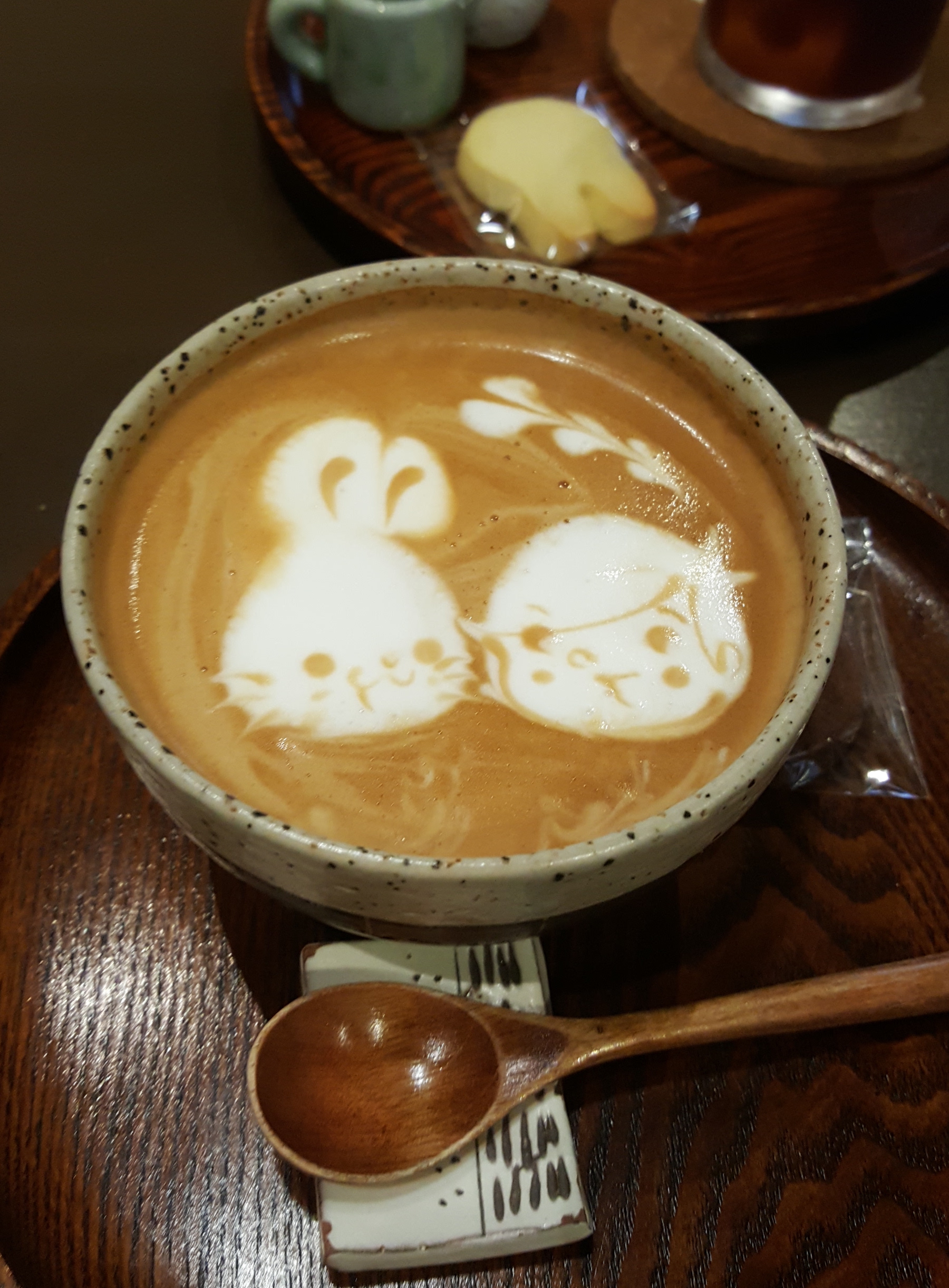 토끼와 소년 모양의 라떼아트를 해주기로 유명한 이 곳!