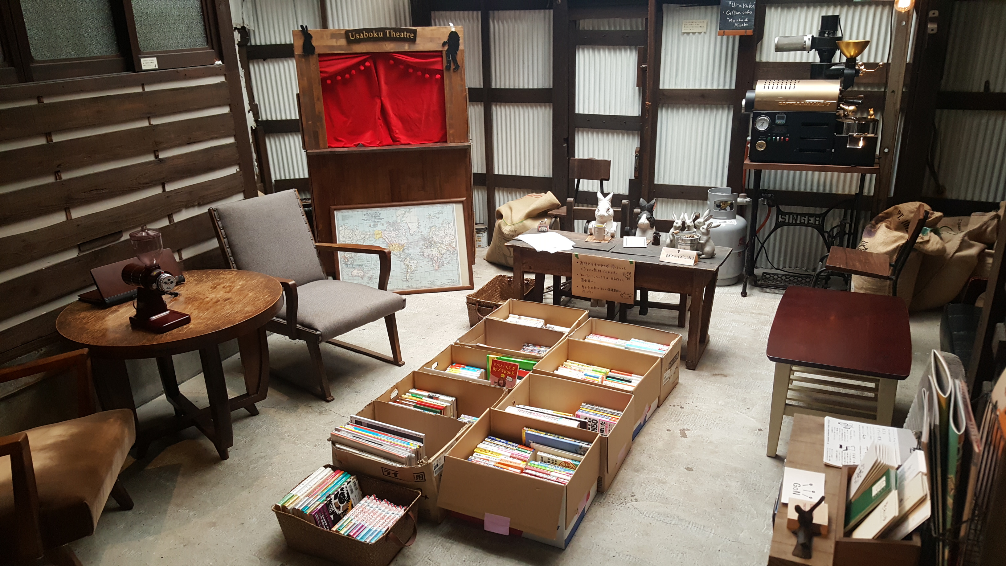 가게 한 켠에는 작은 인형극?을 할 법한 도구도 있고, 책과 다양한 토끼 소품들이 있다