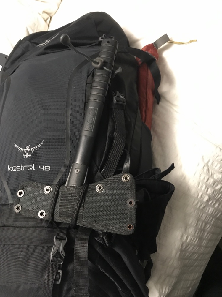 I assumed the loop on the bottom of the bag was for making it easier to pick up the bag while its flat. Turns out it combined with another strap is to hold a shovel or axe on your bag securely.