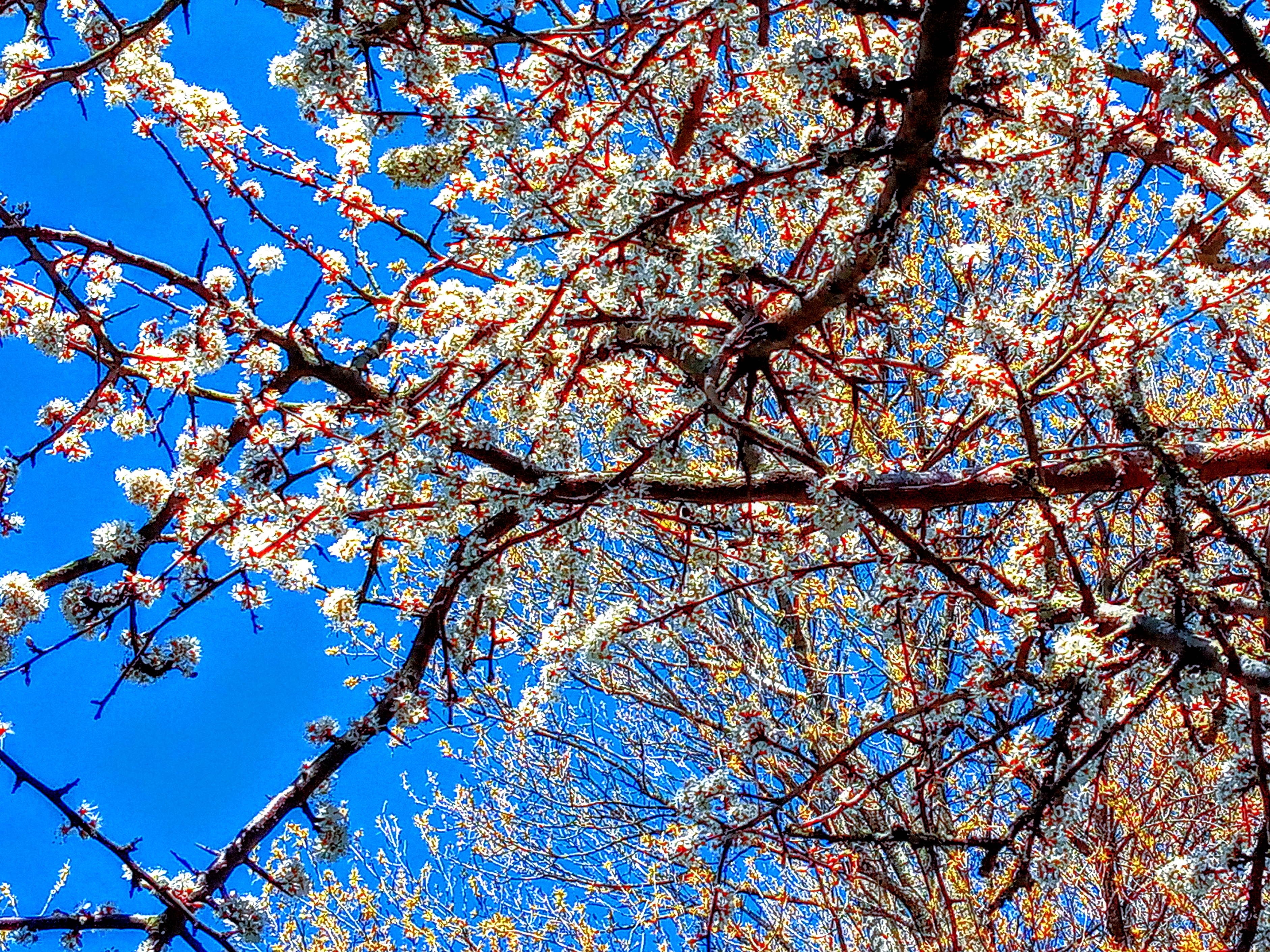 Bevor die Kirschblüten kommen noch ein etwas überzogenes Bild von den Schlehenblüten vor dem Haus.